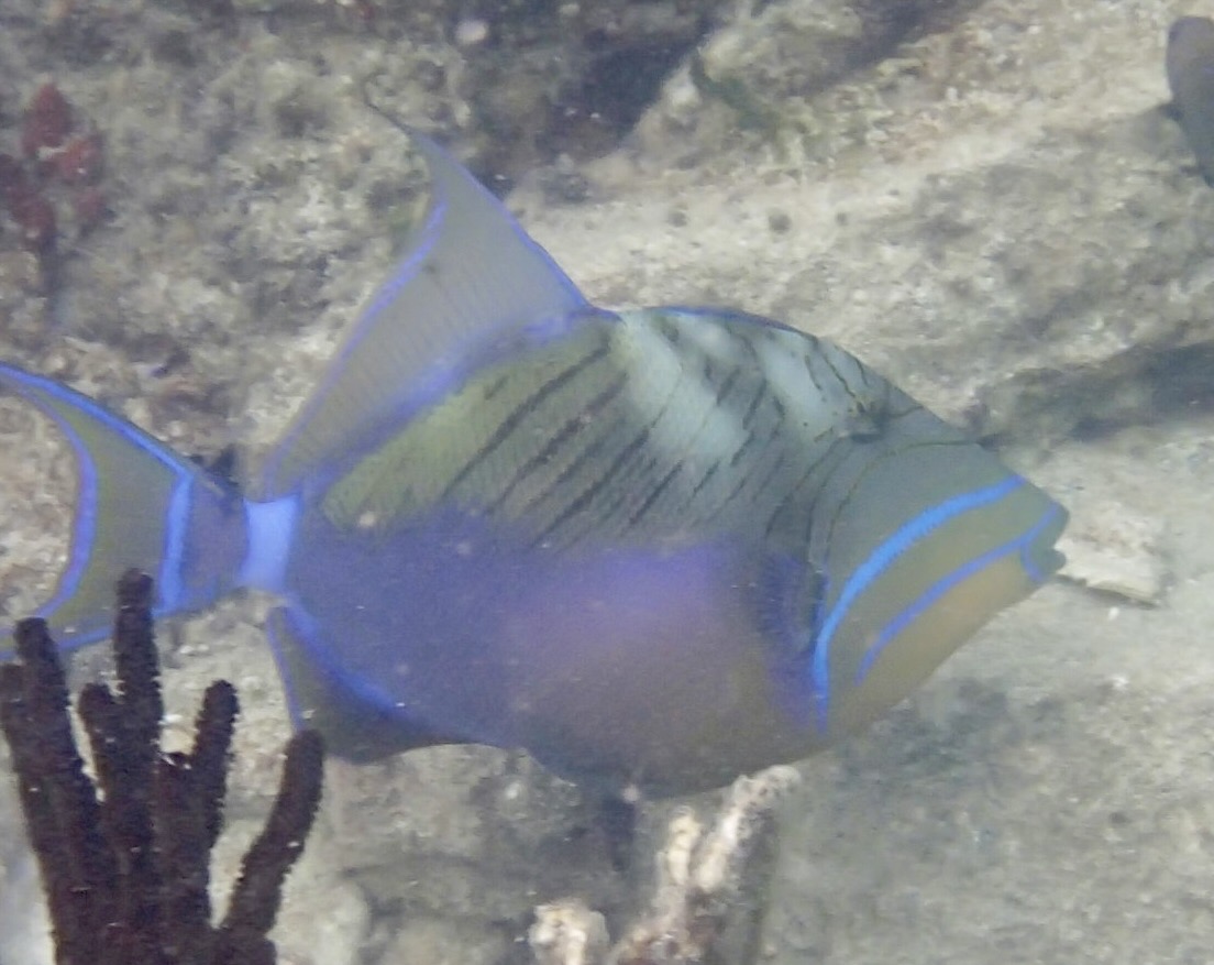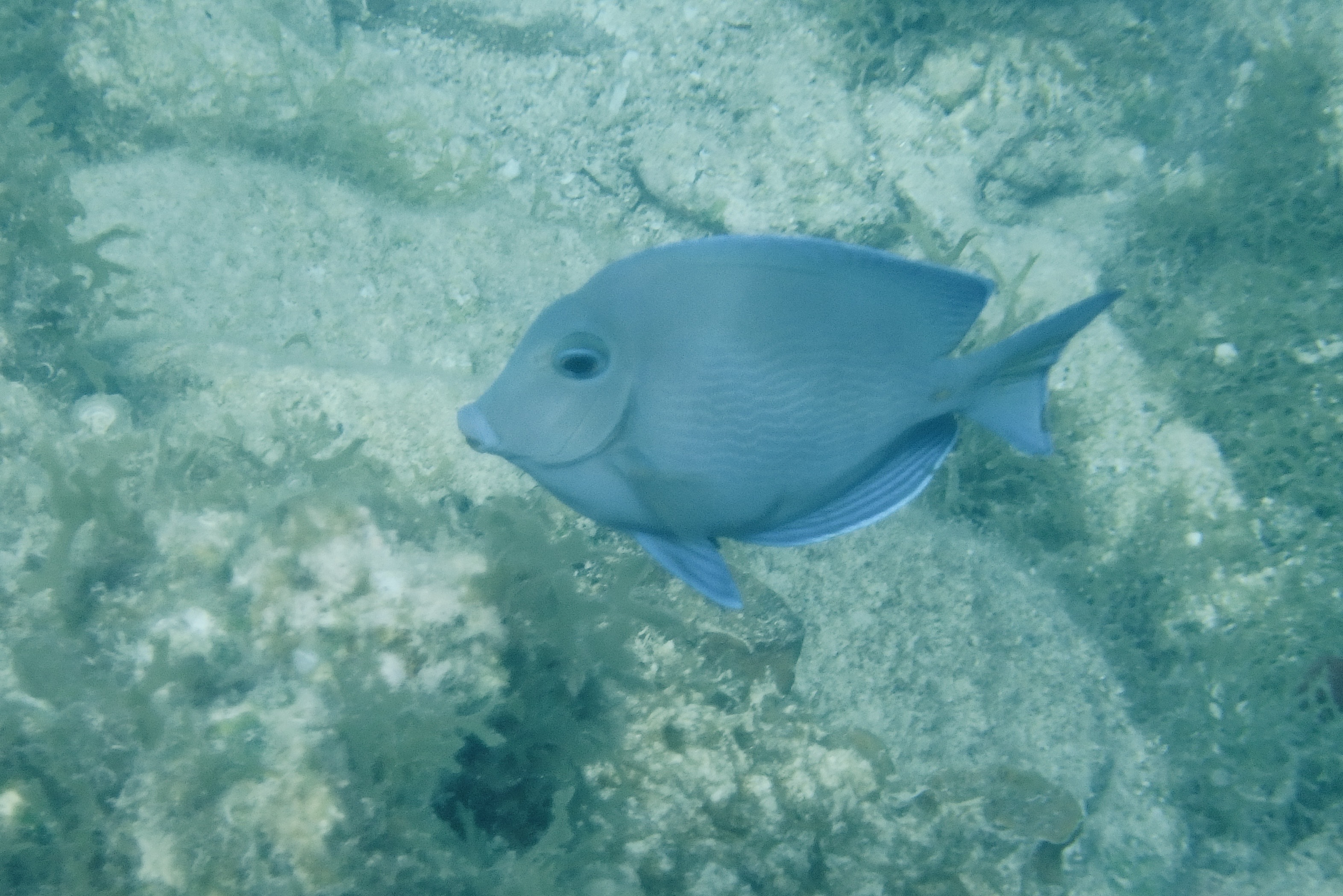 Exiting in the middle with its grassy beds, I was quite content with my adventure until I compared notes and my lame photos with Tasia’s and my few blue tang and blue parrot paled compared to her exquisitely captured images of a Longspine Squirelfish, a Threespot Damselfish, a Gray Angelfish, a Parrotfish, an Ocean Surgeonfish with an Foureye Butterflyfish, a school of Dwarf Round Herring, a Moon Jellyfish and a Hawksbill Sea Turtle. Clearly she is the expert photographer and I definitely qualify as the inexpert…though I am quite good at using Google Images to identify the fish she captured!