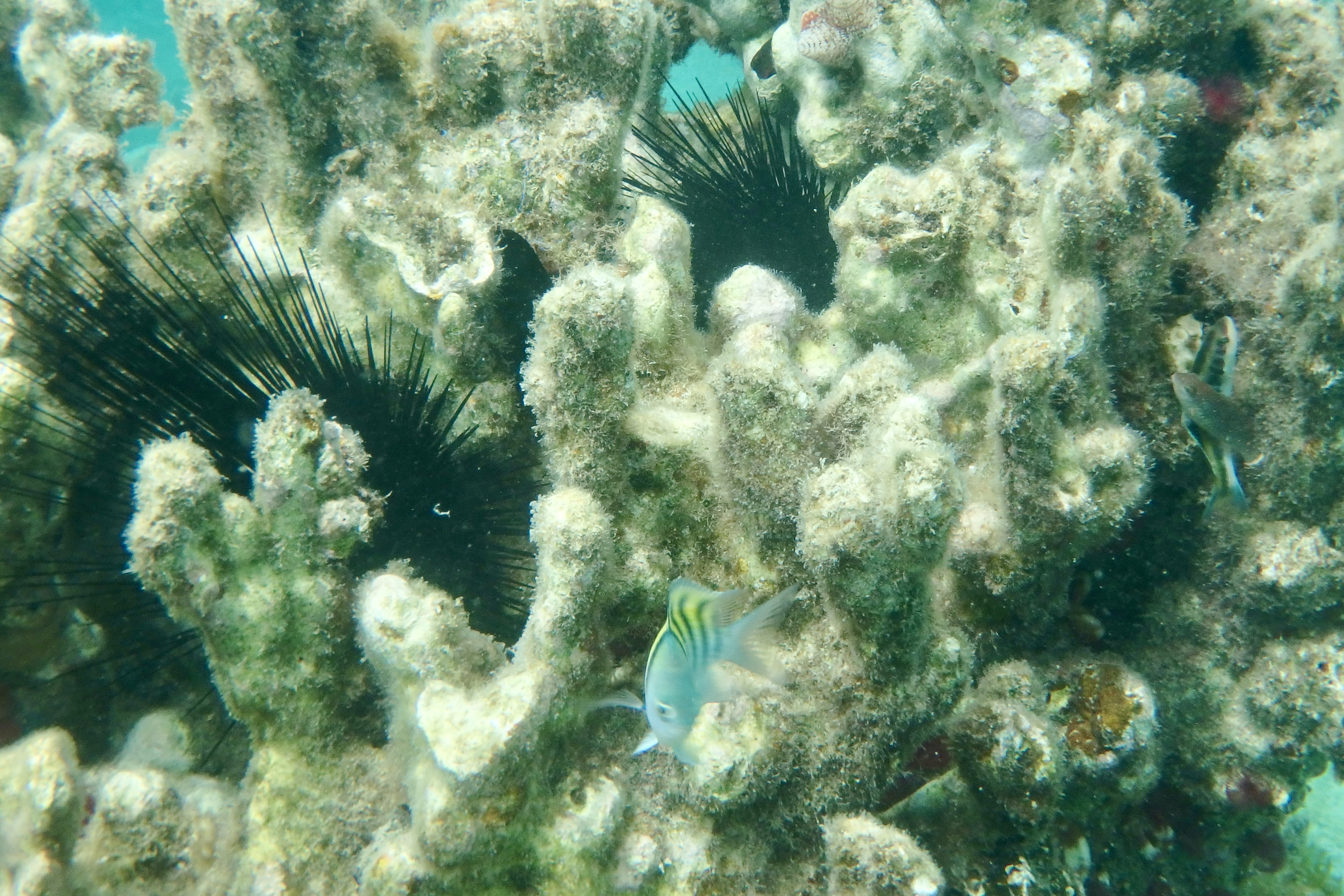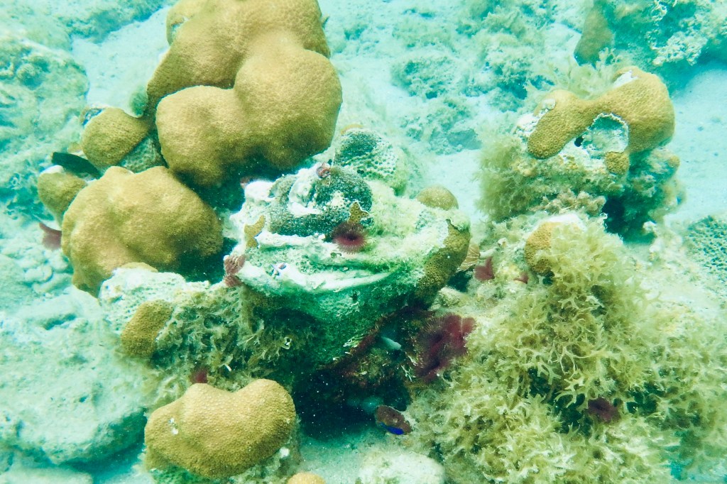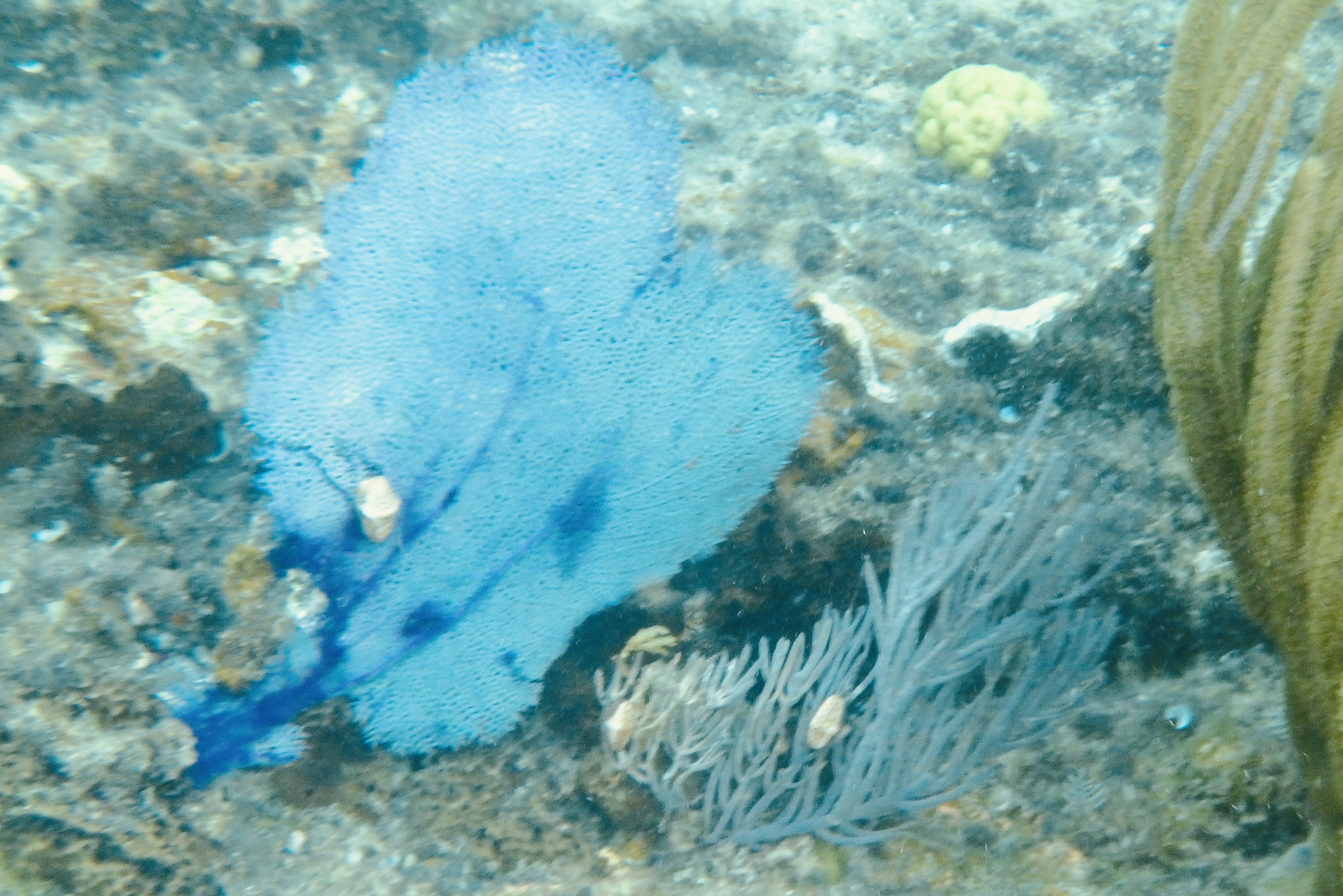 So I again lumbered off the boat, tank in tow, looking like a like a lame penguin.    After plunging into the depths of only about 20 feet,  I knew immediately this would be a no go.  It felt like my ear drums were screeching and not wanting my ear drums to explode or implode, I signaled thumbs up after only one attempt at equalization. Already struggling with hearing loss already, I chose not to risk making the loss total and permanent . Disappointed yes!  But choosing to make the best of it after dumping everything but the snorkel and mask,  I went snorkeling over near Luke who had opted not to try the scuba diving.  I enjoyed it much more, going at my own pace, with no rush to keep up with the others leading the charge as on St. Croix and my ears were not screaming. I had my waterproof camera in tow and managed to take many unremarkable photos of fish and fans. Clearly underwater photography is not my forte.