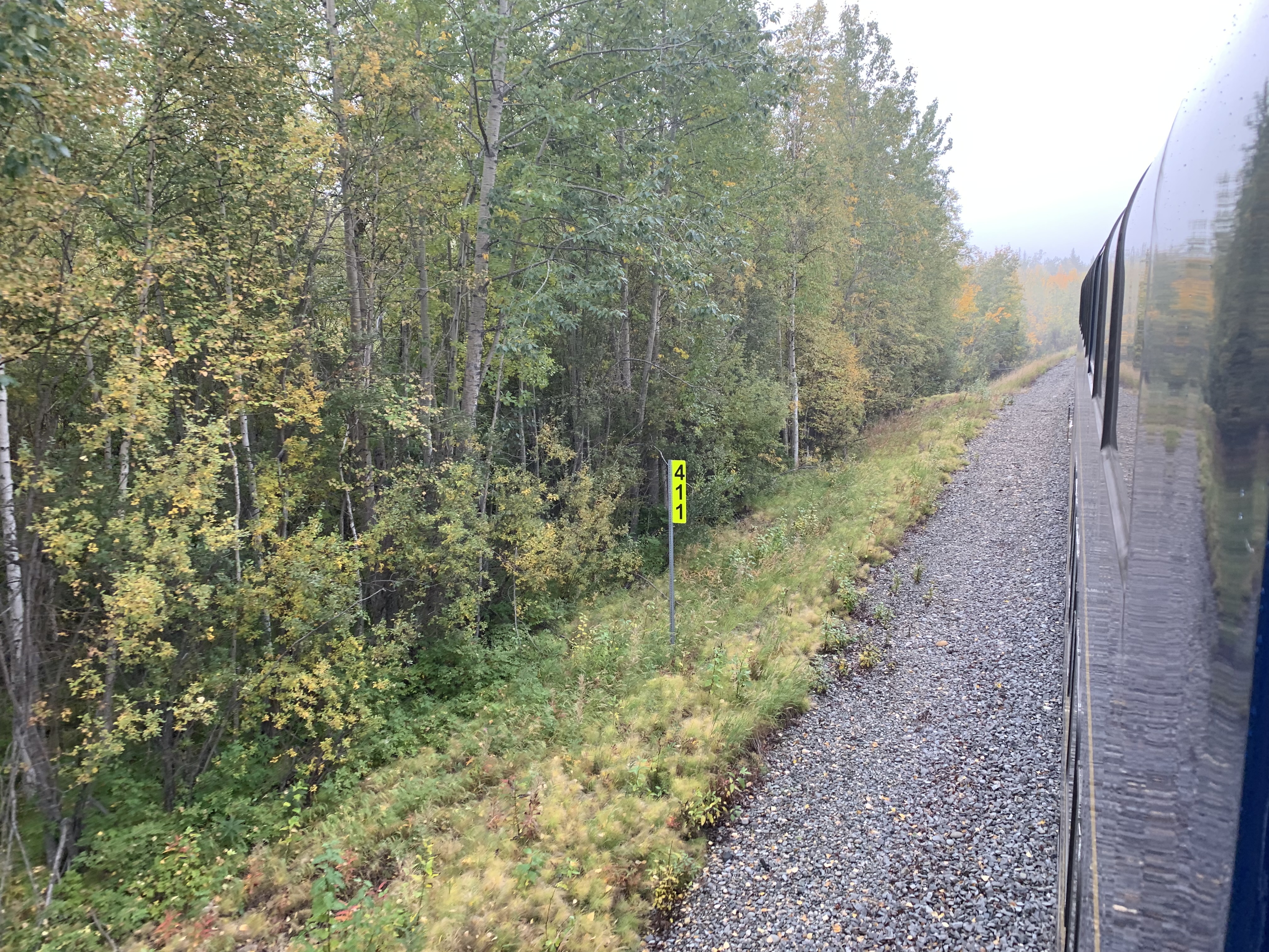 I was fascinated to learn that on this same track between Hurricane Gulch and Talkeetna, AK RR operates a Flagstop Train. Local residents of Chase (pop. 19, 2020 census, down from 34) a settlement at mile 236.2 AK RR, on the Susitna River, 9 miles north of Talkeetna, have established their homes in the wilderness along the railroad and thus use the service as a way to reach their cabins or homes that aren’t accessible any other way. It’s a lifeline to transport necessary goods from the larger cities, get to liquor store but hopefully more often the grocery store. This train still operates as a “flag stop” service meaning it allows passengers to hop on and off if they want to visit a neighbor, go to the store, or if it were my grandson just hopping on because he is obsessed with riding trains. Just the wave of a flag will stop the train and, to disembark, one simply notifies the conductor of the milepost where they wish to stop to get back off. Seems like a pretty good system to me. I would definitely not want to be standing by the track, waiting here to wave down a train on this day!