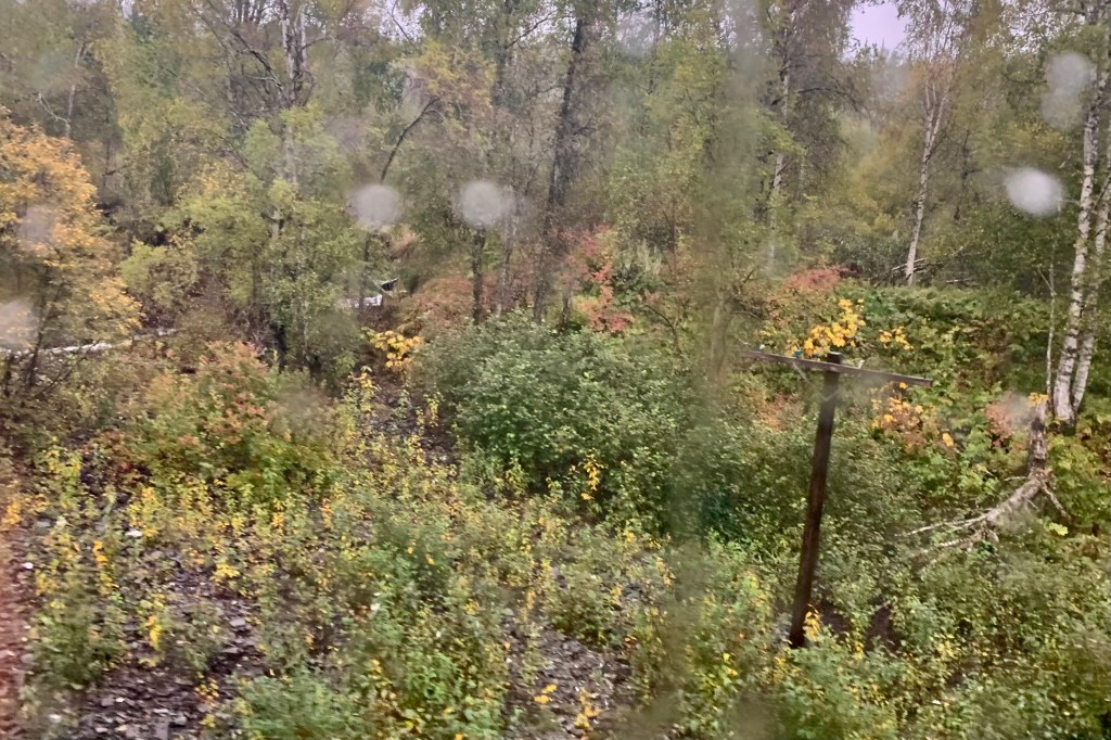 The GoldStar Service was well worth the first class $$$$$! The glass domed carriages (sounds like Cinderella’s conveyance) gives one the experience of being surrounded by nature on all sides (almost). Seemed like I was sitting out in the rain and not getting wet (well not quite)! Nor was I in the line of attack from a bullheaded moose which by the way we saw none of. In fact we saw NO wildlife but who can blame whatever wildlife there might be for not being out in this drizzly weather to wave at us.