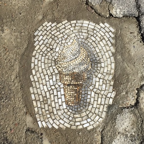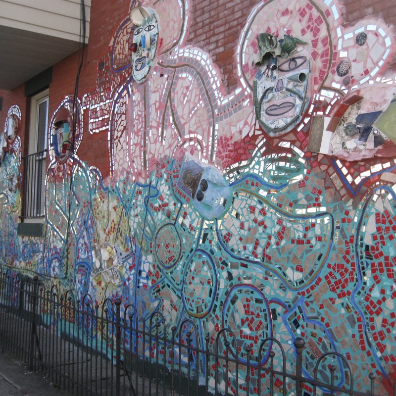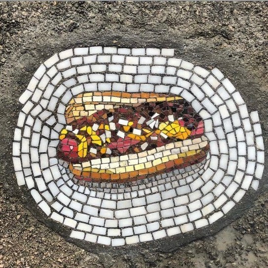 Mosaics can be found through history ranging from todays pixelated computer “mosaic” images and on back to the famous mosaics of the Byzantine Empire and the religious images in elephantine Roman Catholic Cathedrals. They are awe inspiring but, honestly, I gravitate much more towards these modern word mosaics such as those created in the pothole images in midst of urban road decay by Jim Bachor in such cities as Chicago, New York, ND Washington D.C. or the work of Isaiah Zagar who brings mosaic art to store fronts and building walls on the streets of his hometown of Philadelphia. Like the walls and bed of Mosaic Canyon where the mosaics can be walked on and touched, these modern world mosaics are much more akin to the natural world.