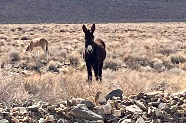 To add one more element of suspense there were signs warning about burros on the road. It seems that the wild invasive burros frequenting the area are remnants of the burros brought in by early prospectors. I would like to think perhaps they are the distant cousins of the “20 mule team” burros but the sad part is that they are destructive to the fragile desert ecosystem and harm native species.