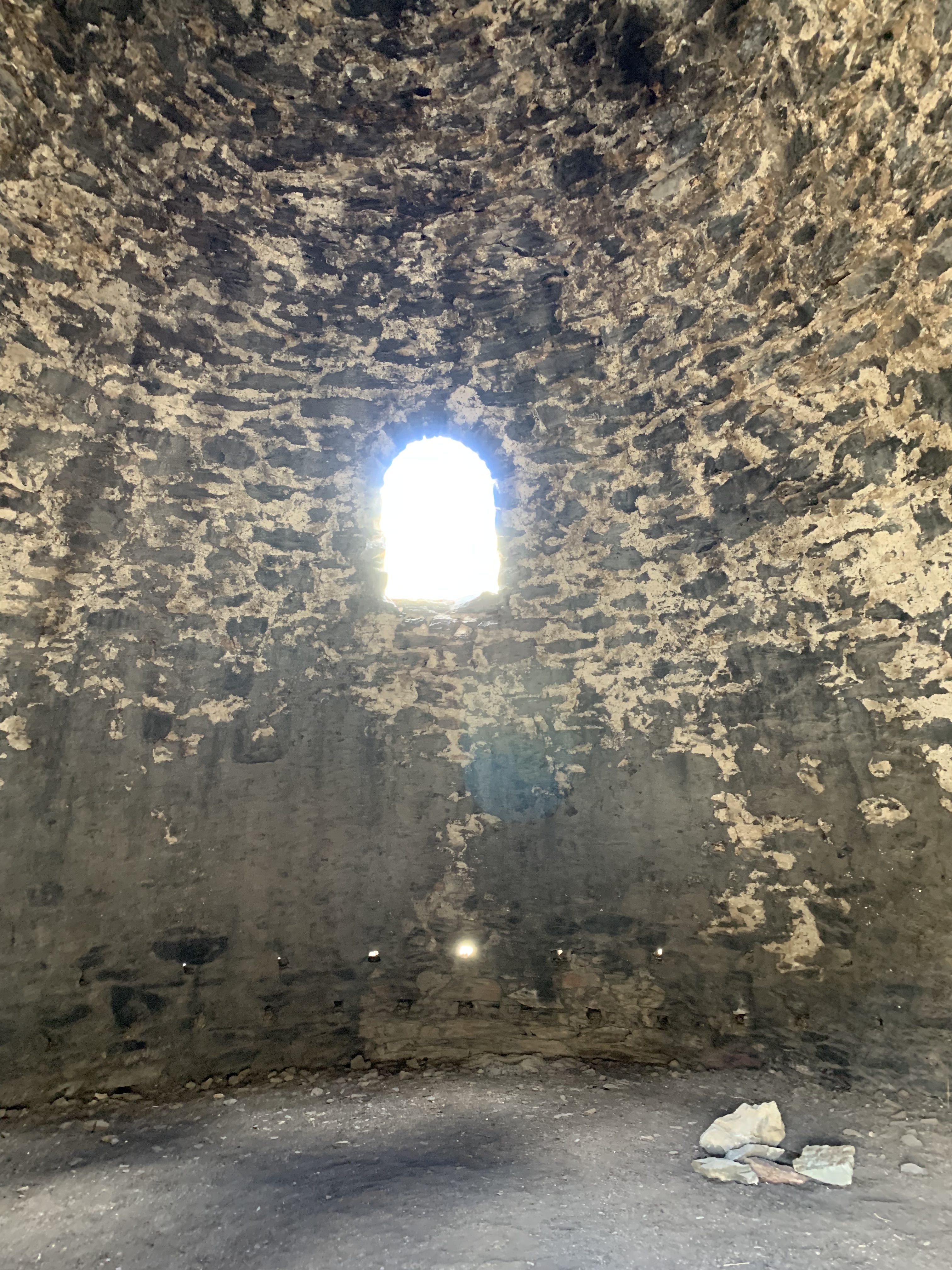 So, it was to be a short tour of the kilns and then head back down . These Charcoal Kilns are ten beehive shaped masonry structures about 25 feet high. I found them strange enough looking that I am surprised that they did not make a guest appearance in a Star Wars Episodes as so many other spots in DVNP have. These kilns produced a source of fuel (charcoal) suitable for use in two smelters near the lead-silver mines 25 miles distant. Charcoal was transported to the smelters by jackass pack-trains. I would like to think that the 20 mule team hauling borax in the Mojave desert had flexible working conditions and garnered the occasional trip up to the cool mountain air to transport charcoal. The kilns were giant airtight ovens pyroltizing pine to charcoal. That charcoal is not the modern briquette used in our “old fashioned barbecue grills” but a much more porous form of carbon prepared by charring wood in a kiln from which air is extruded. In the 19th century and earlier, charcoal was used for a furnace fuel because it burned with the greater heat that was needed for the refining of ores. Guess back then environmental pollution wasn’t an issue. Now rarely is it fuel for either homes or barbecue grills which now often rely on natural gas. No longer is your char-grilled steak charred by charcoal.