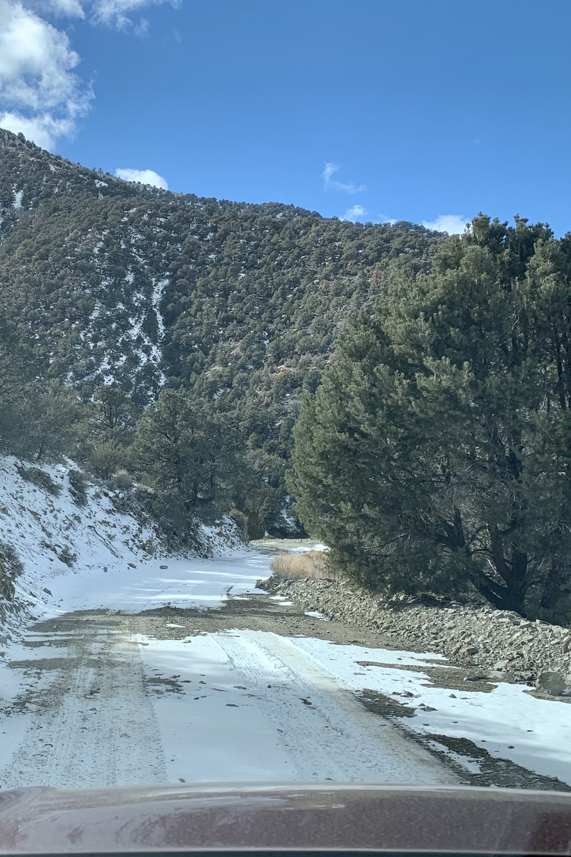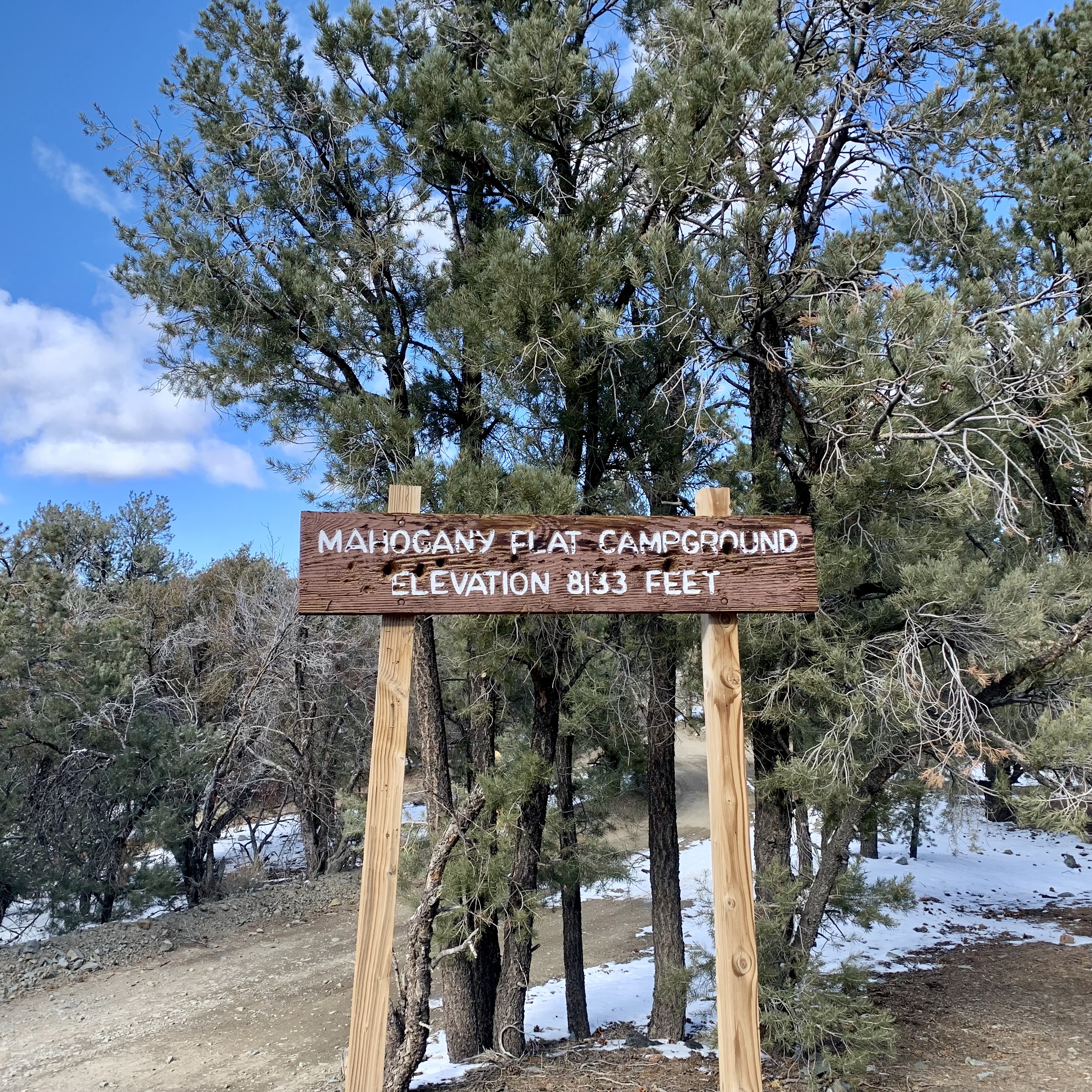 Thinking about leaving, I eagerly eyed the road that would take us up to Mahogany Fat Campground at 8200 ft. The sign indicated that this dirt road access needed high-clearance vehicles, 4×4 required. Not wanting to miss what would be most likely great views, I decided that my all wheel drive Crosstrek would love the challenge. Tasia was a bit skeptical but she knew enough that once my mind is set on a destination, I was unlikely to alter course. I reassured her that we could always turn round need be. My hunch paid off and though it was a bit rutty, muddy, rocky and snowy we made it up and back down and didn’t bottom out or rip up the undercarriage. We only slithered a bit. And we were rewarded with exceptional views.