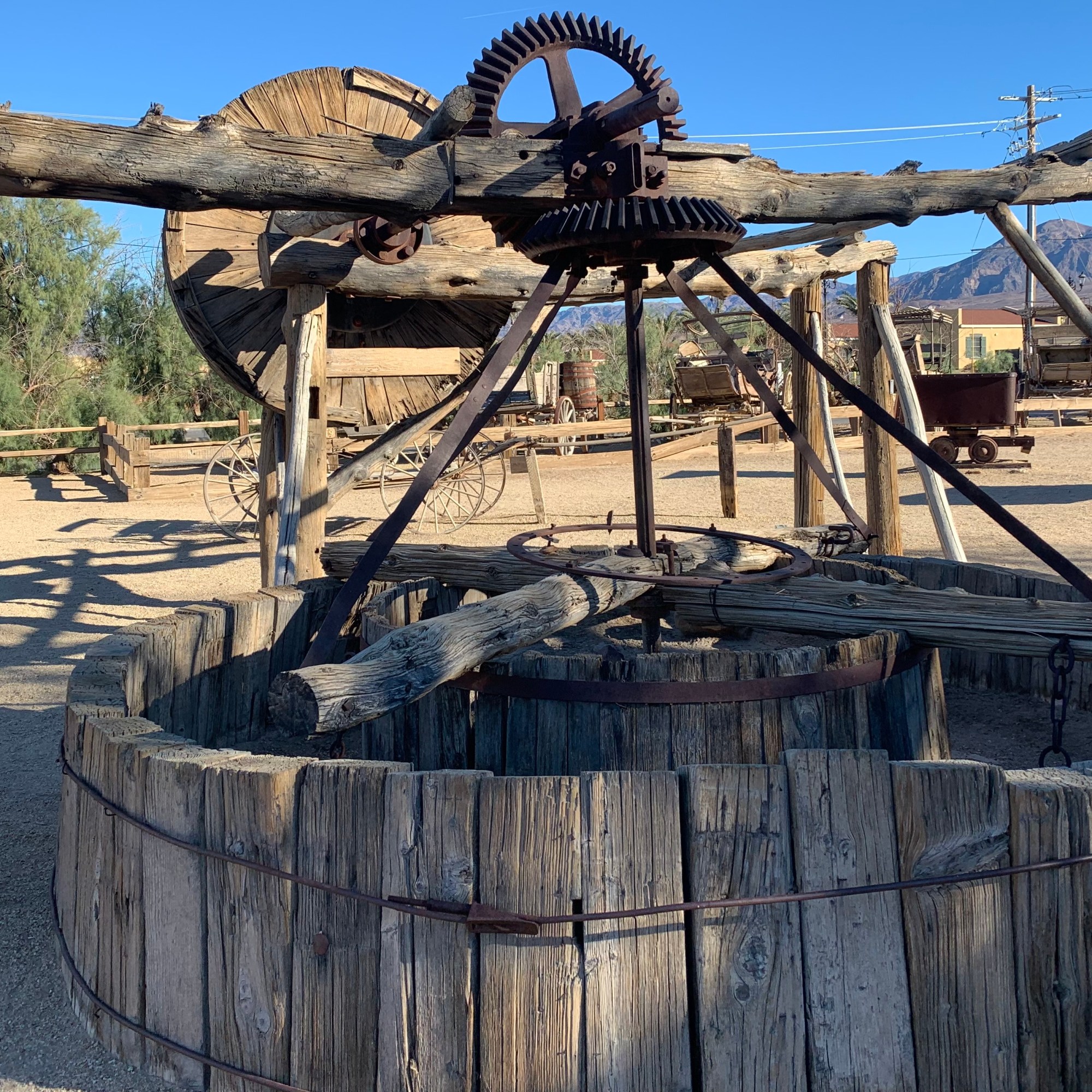 On our final morning in DVNP before we bade farewell, we cruised the Borax Museum. If you have a keen interest in the Borax Mining Operation in Death Valley in the 1800’s you will be fascinated. Now I am not a big museum fan but cruised the exhibits and of the 66 items I would put on a menu would be the 20 Mule team Wagon Train, Panamint Valley Stage Coaches, Old Dinah… what is most fascinating is seeing what could be accomplished with basically iron and wood and methods we would definitely think of as pre-historic today.