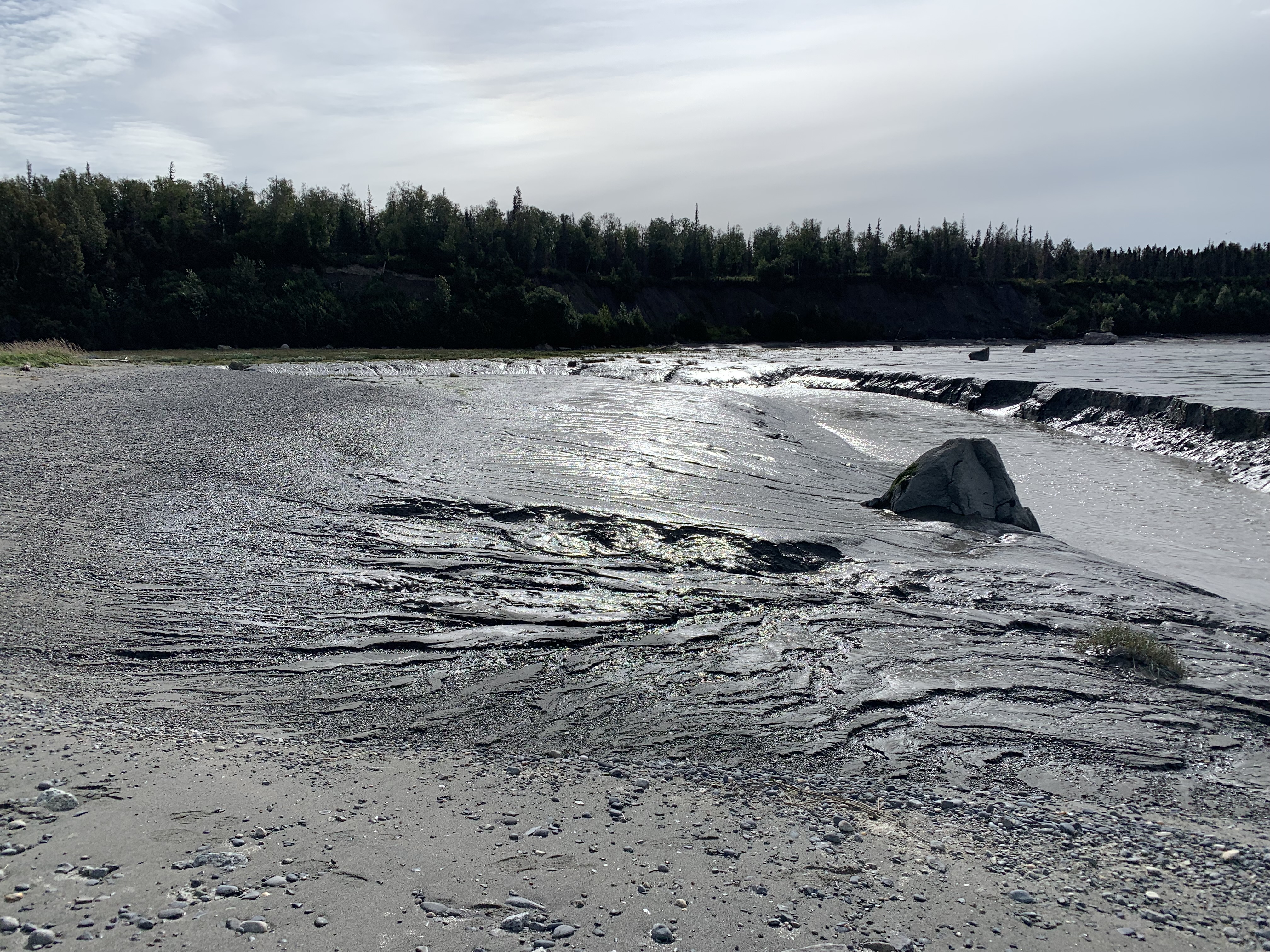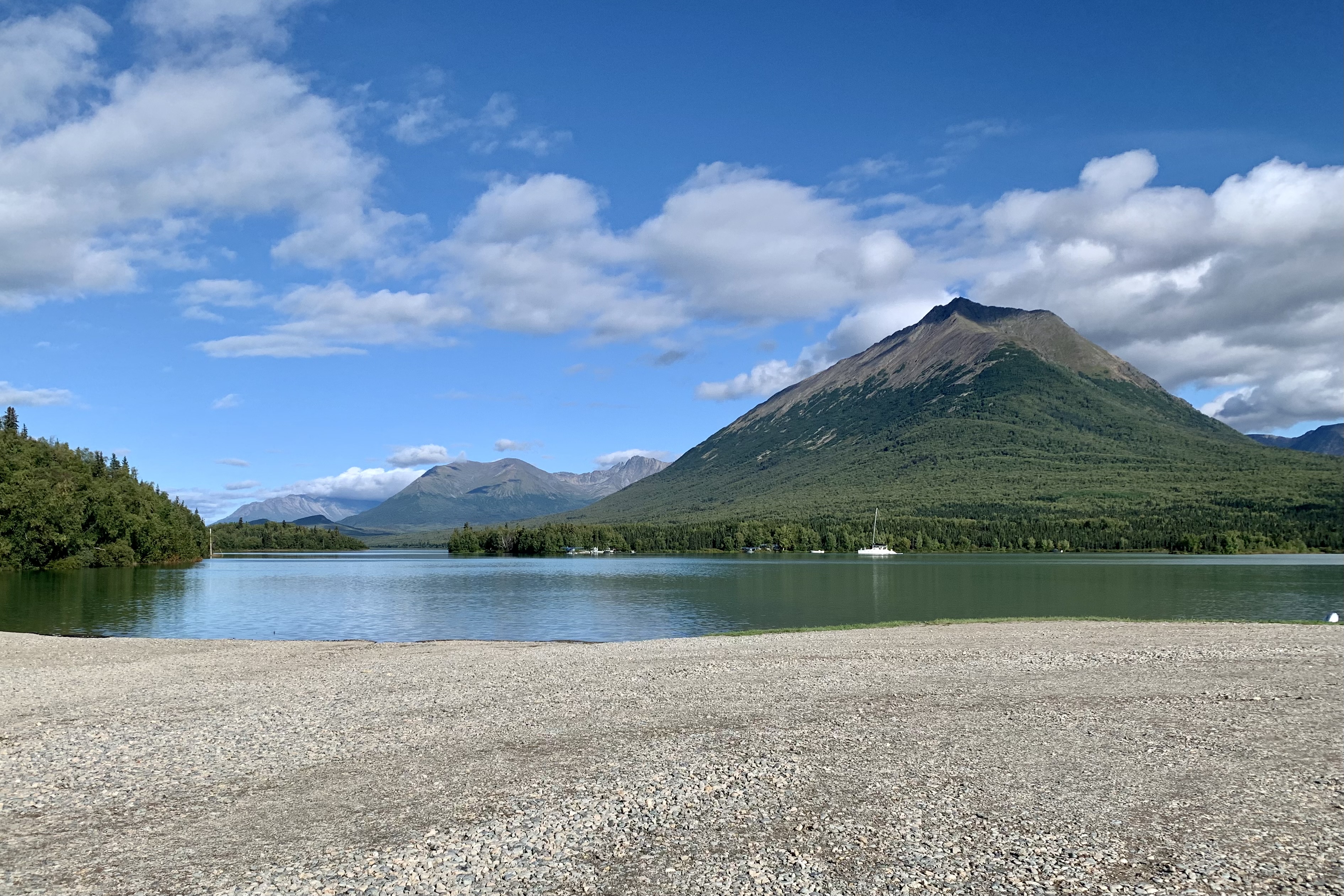 Most adventures that I blog include the task of getting there. Sometimes it is a tedious repetitive activity to be endured and other times it’s a stand alone episode. An so I begin the story of the latest venture in my quest to visit all of the National Parks in the USA, and in this case Lake Clark NP and Katmai NP (#53 and #54). My daughter, Tasia flew into Kenai AK and we spent three days packing up my household goods into a very tall U-Box to be shipped to Oregon and I bade farewell to my Alaska Homestead feeling more relief rather than sadness. Part of the “grande finale” of living on the Kenai for 5 summers was taking the time to comb Kenai Beach and the beach at Captain Cook State Recreation Area with Tasia, an avid rock and fossil connoisseur. The beach is littered with immense boulders that were dropped by melting glaciers. They dot the beach and mud flats offshore. A clutter, tumble and tangle of of colored rocks, of varying shades of red, green, yellow, clear, black and granite carpet the beach. The 50-60 foot eroded cliffs and the walled “canyons” that cut through the mudflats near the river outlet add a raw beauty to this area. The view of Aleutian Range of mountains across Cook Inlet is breathtaking and at that point, I did not know with a couple days I would be circling those behemoths in a float plane. This was a fitting preface for the explorations awaiting us.