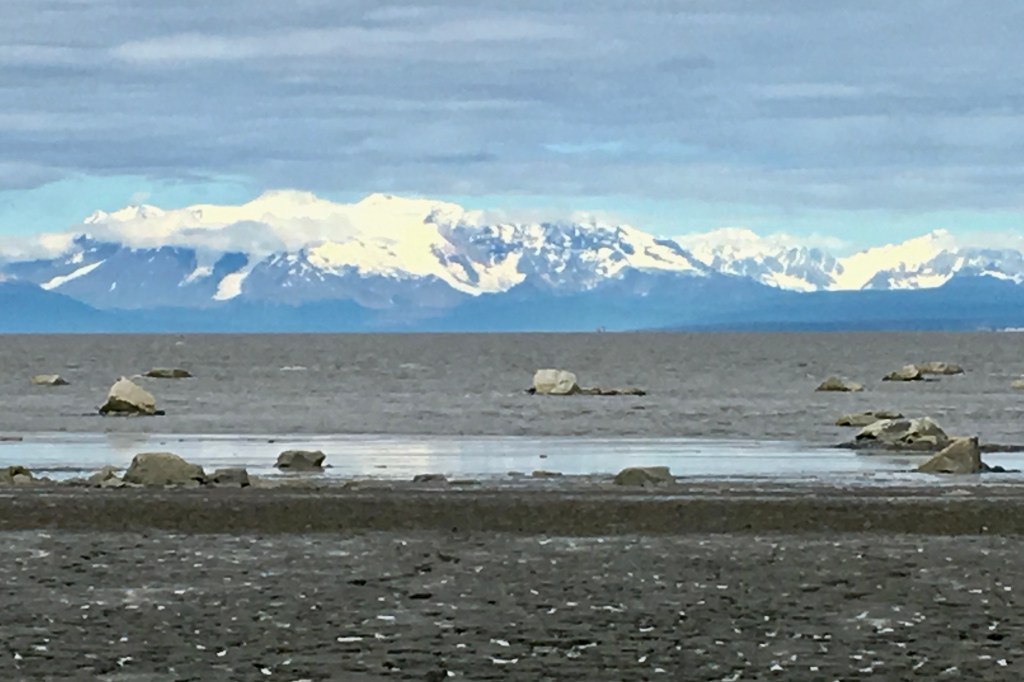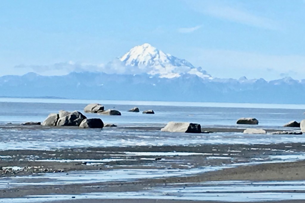 Not too long into this flight our pilot pointed out Mt. Redoubt, an active stratovolcano which has erupted many times in recent history, the most recent in 2009 and the highest peak in the Aleutian Range at 10,197 feet . Mt. Redoubt is an ubiquitous sight as it can be seen from the Kenai peninsula where I have a home. It boldly presents itself in the distance on a sunny clear day as it majestically stands in the distance . At times when I have travelled the Sterling Highway south towards Homer or north towards Captain Cook State Park, despite being 50 miles across the Cook Inlet, Mt. Redoubt’s massiveness makes it appear to be just a jot across the inlet.