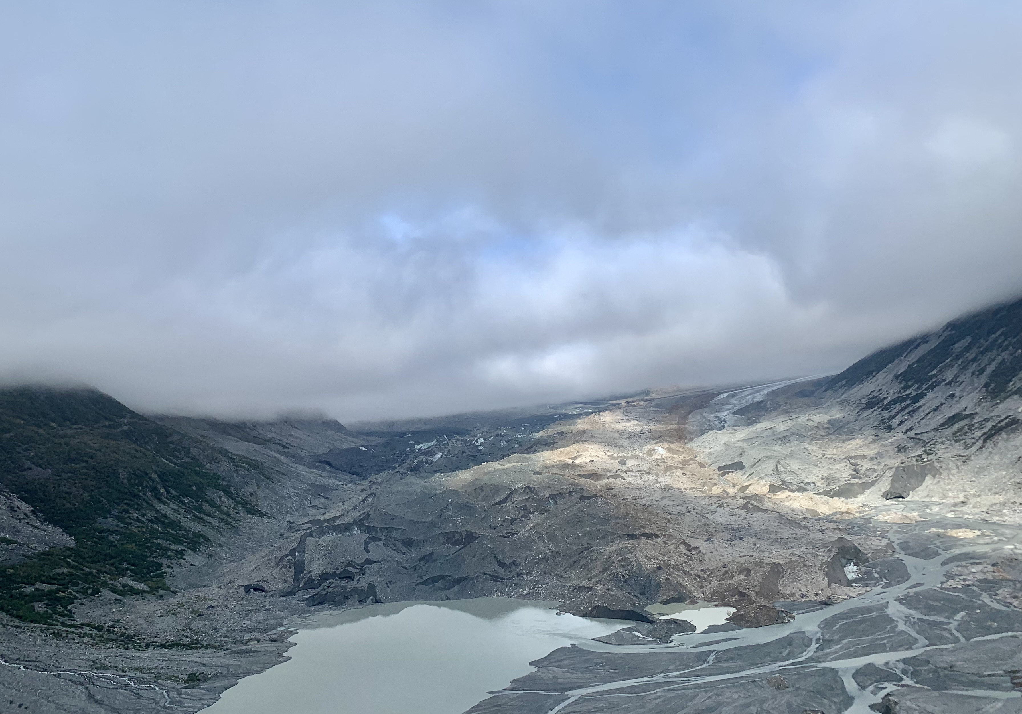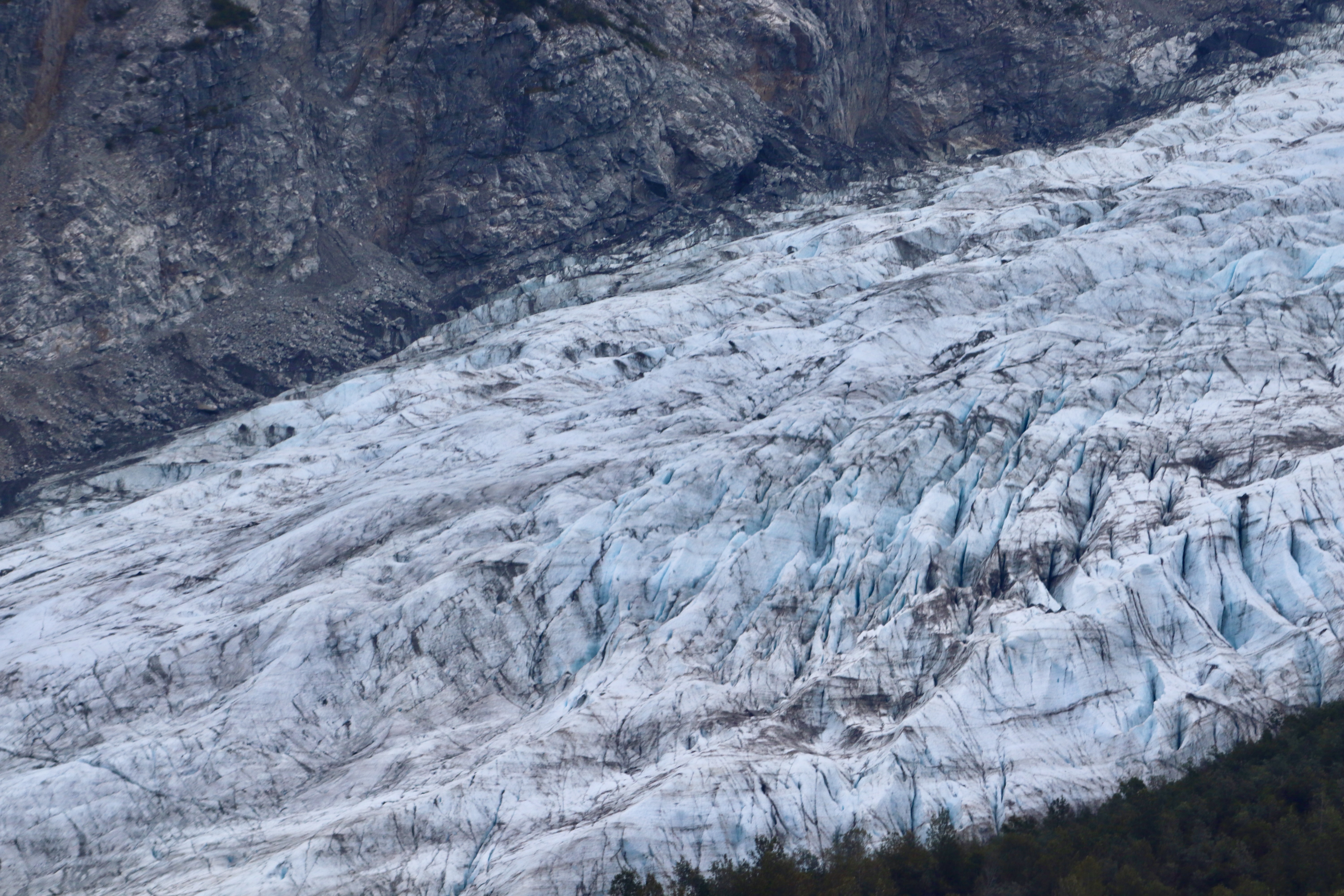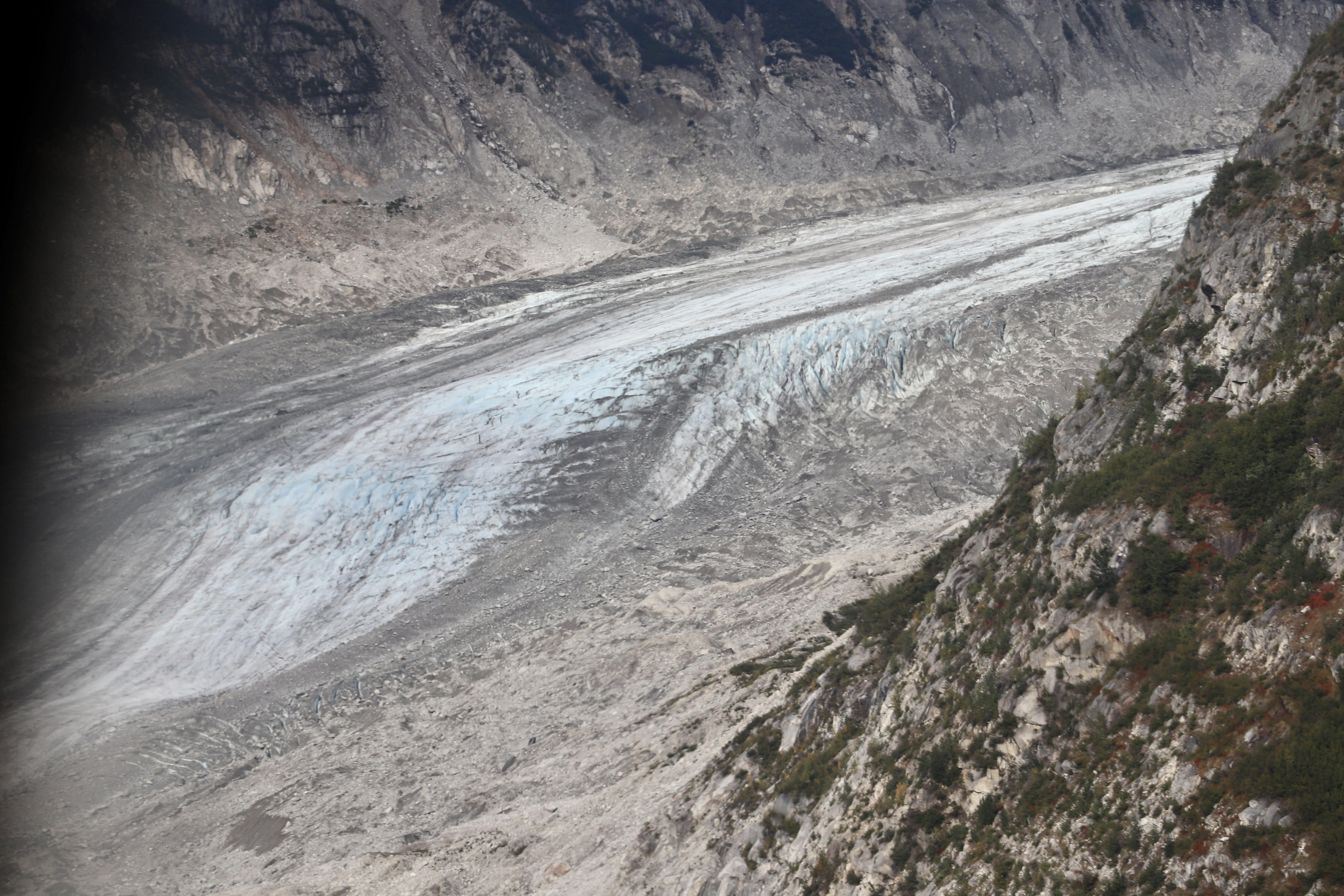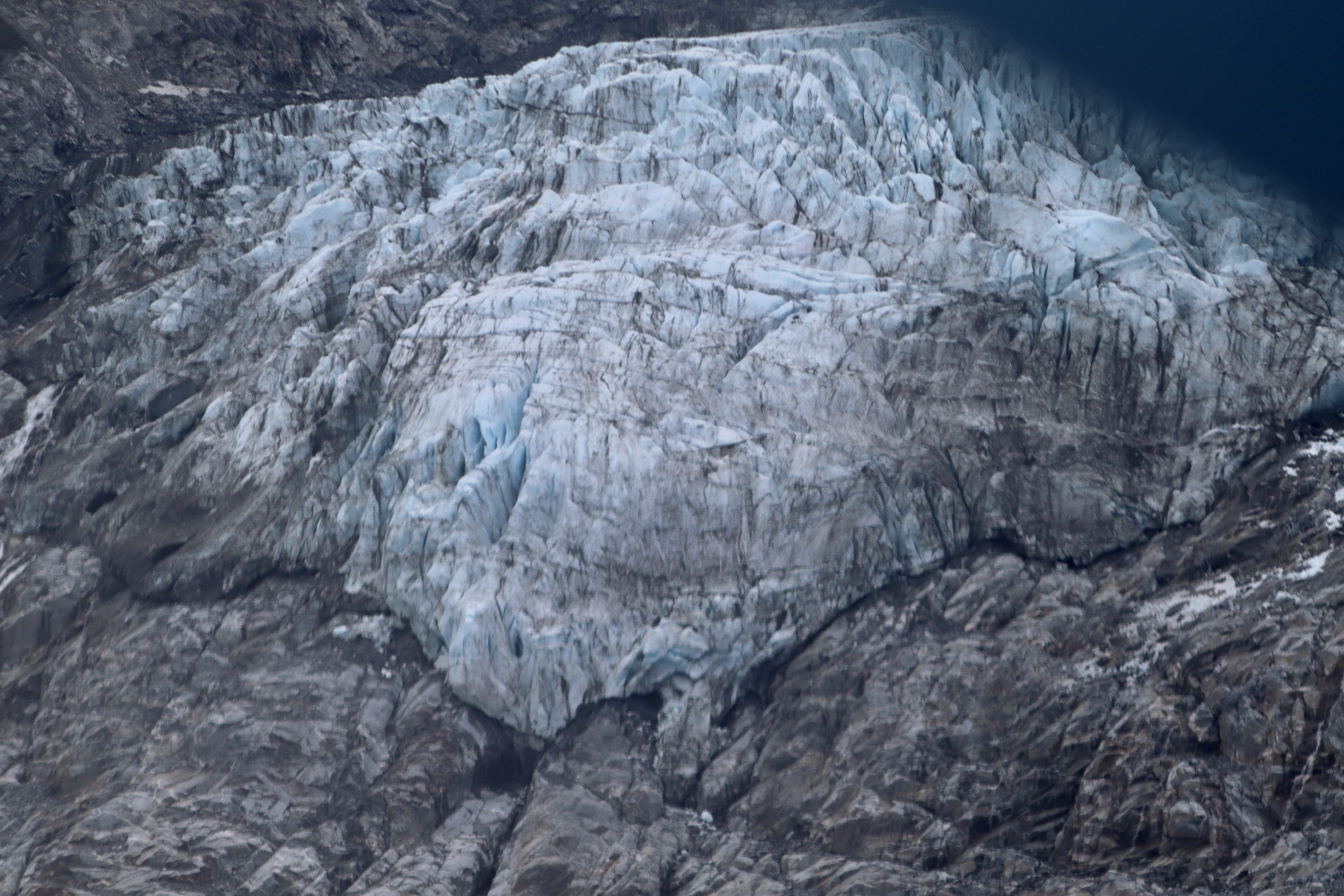 Many of these frozen rivers (valley glaciers) we saw snaking through the valleys and many of the ones we were viewing contain a fair amount amount of rock and debris that it devours as it slowly scours the surrounding terrain when moving down the valley. Additionally a lot of pollutants, dirt and dust is picked up from the surrounding terrain and becomes embedded causing the dirty streaks of various colors. I was thinking they definitely could use a dust up of fresh snow. Appearing static from above, it is difficult to imagine that they are a grinding machine, ever so slowly marching down the valley (though actually there are some glaciers that go down galloping).