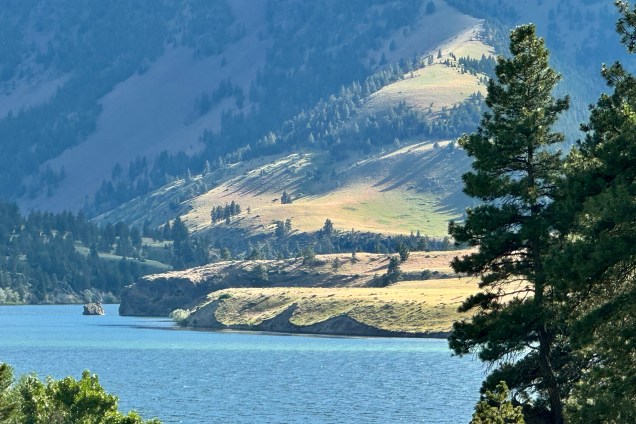 I awoke to the squawking of birds in the pine tree above my tent, hoping they were not decorating my new tent with avian excreta. It was around 7:00 am – the end of the “quiet hours” posted for the campground so you might well guess a few of the boats were already revving up their engines and the trucks hauling other boats from the campground to put them in the water were clattering by. Since I have been retired, I have not been particularly keen on starting my day early, but there was that day years back when I too was out there at dawn —- so I get that youthful eagerness to be up and out. The biggest disappointment of this adventure was never discovering if there were logs in the gulch because I was either too lazy or perhaps very wise to choose not to hike the Upper or Lower Log Gulch trails. After a couple strong cups of coffee at my Log Gulch Cafe it was time to dismantle and reload all of the camping gear that was so challenging to set up. Once loaded and ready to go, I was sure the drive out would be much quicker as I had not seen any RV’s heading out recently. BUT SOON I was behind another VERY cautious RV crawling out the road…but this individual pulled over at the first opportunity to allow me to pass.