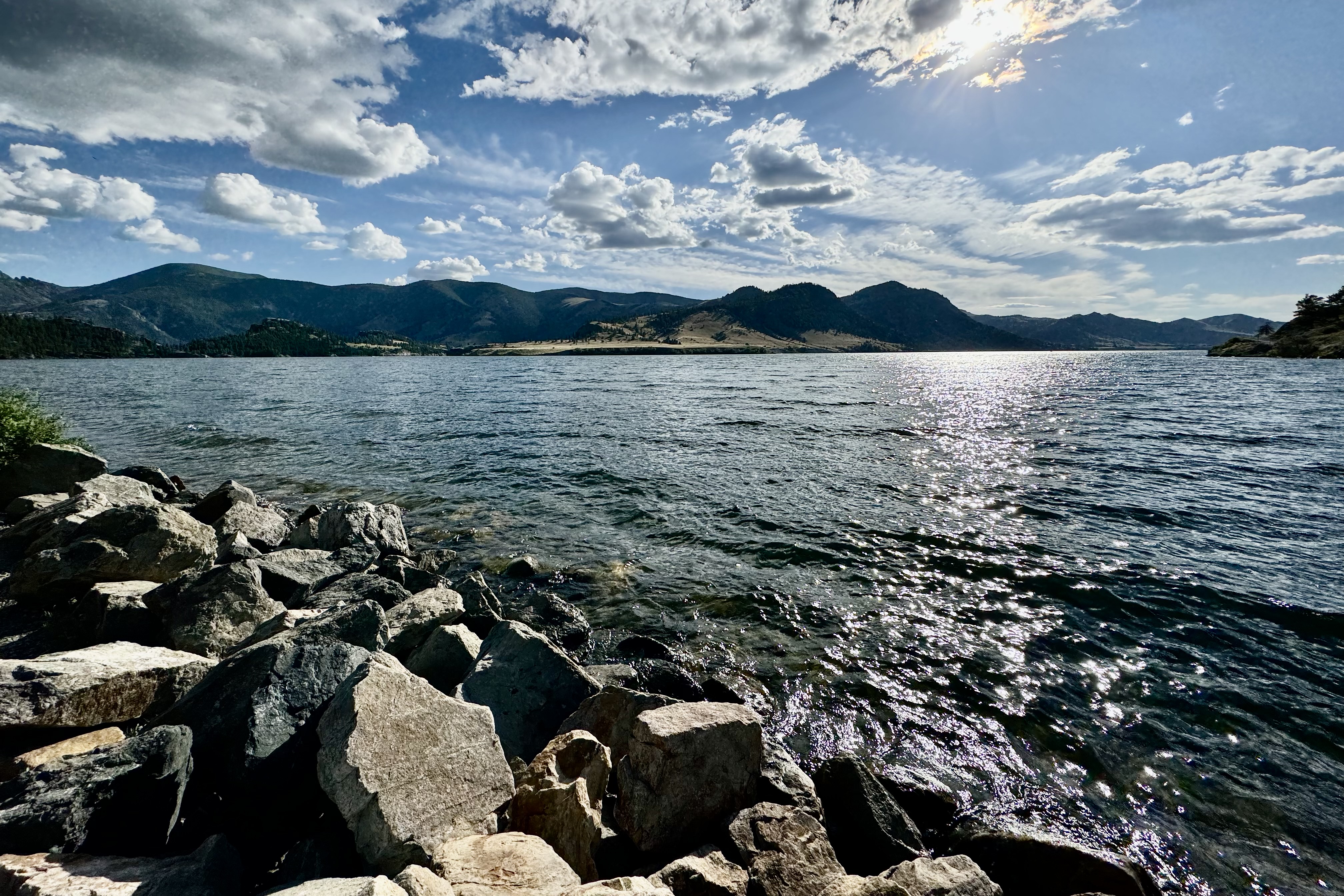 As I discovered my site, what appeared on the map when making the reservation as lakefront was not quite the lakefront I had envisioned. In between my campsite and the lake was the road (this was on the map with beach on the other side.) But intermediary were day use pit toilets, the lake parking lot, garbage dumpsters and a pavilion for day use. In addition, this was a campground of wide open spaces with no buffer zone between sites, hence no privacy. My preference for camping has always been backcountry sites achieved through carrying a heavy load on my back up multiple switchbacks in the heat so this plopping down a tent in my reserved spot in the middle of a larger area that is loaded up with RV’s, children racing around on their bikes (YES) , teens racing around on their 4-wheelers (NO), many campfires … takes some adjusting to. It’s a happy feeling to see so many families and couples enjoying the great outdoors and retreating into their air conditioned homes on wheels at night, but it sometime’s just feels too busy and too public. and too comfortable. Am I masochistic?