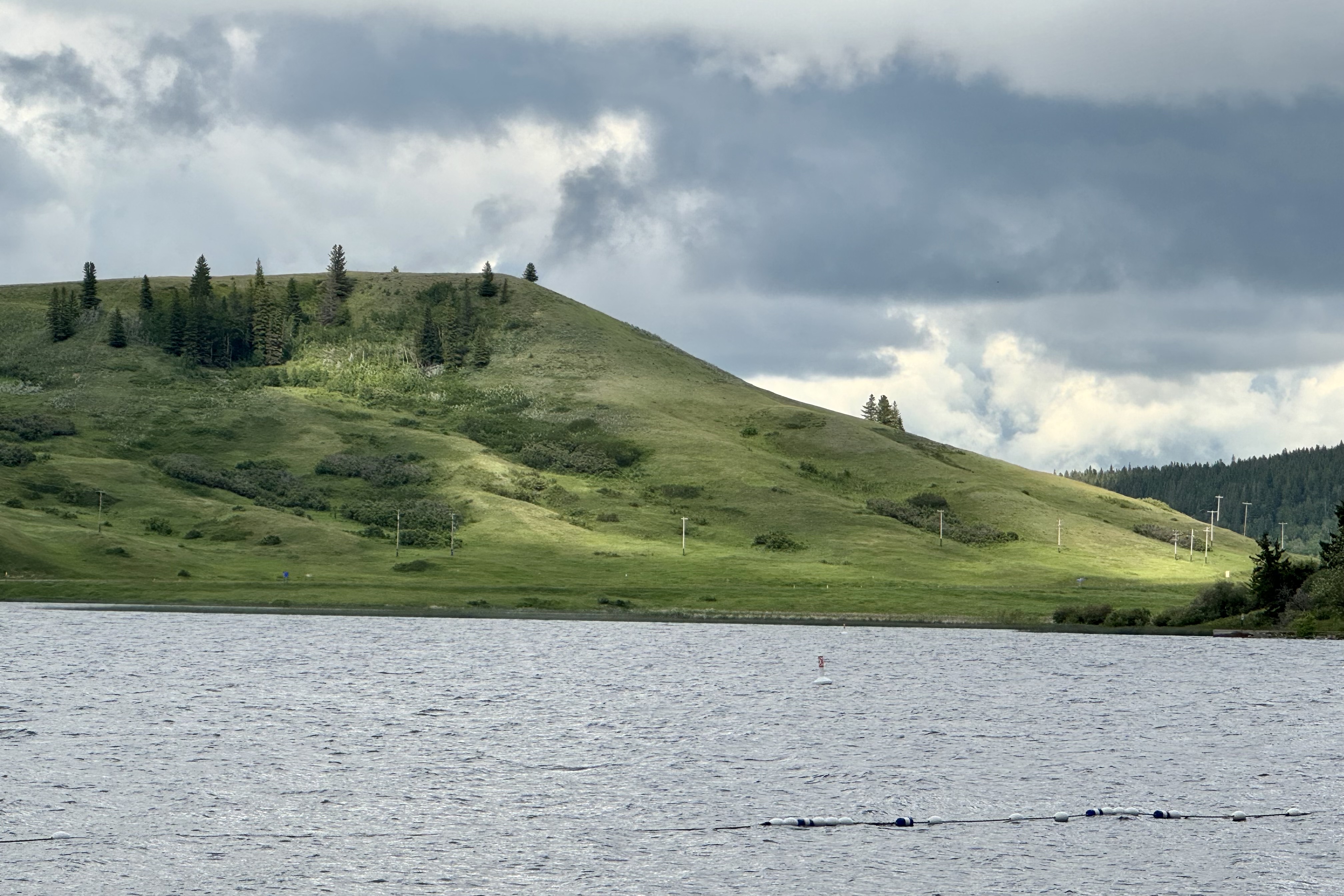 I arrived at Cypress Hills Provincial 3:30 ish and before long I was unloading my gear into the small cabin that I would be very grateful for throughout the two day stay during which there was 2 days and one night of intermittent chilly rain. This large and sprawling park is part of Elkwater Town Site, a cottage community, and my comfy camping hut was near Elkwater Lake with the marina and a large sandy beach within easy walking distance. The big questions posed by my silly offspring in our text chain were: Are there elks in the water? AND What does elkwater taste like? Was tasting the water a “dare you” from my son? Disappointingly, I wasn’t able to taste the water since even though I clearly had no intention of going in this “dark foreboding water”, the “WARNING: Public Notice. Swimmer’s Itch” absolved me of any guilt of not answering that question. No parasite induced internal itchy for me!