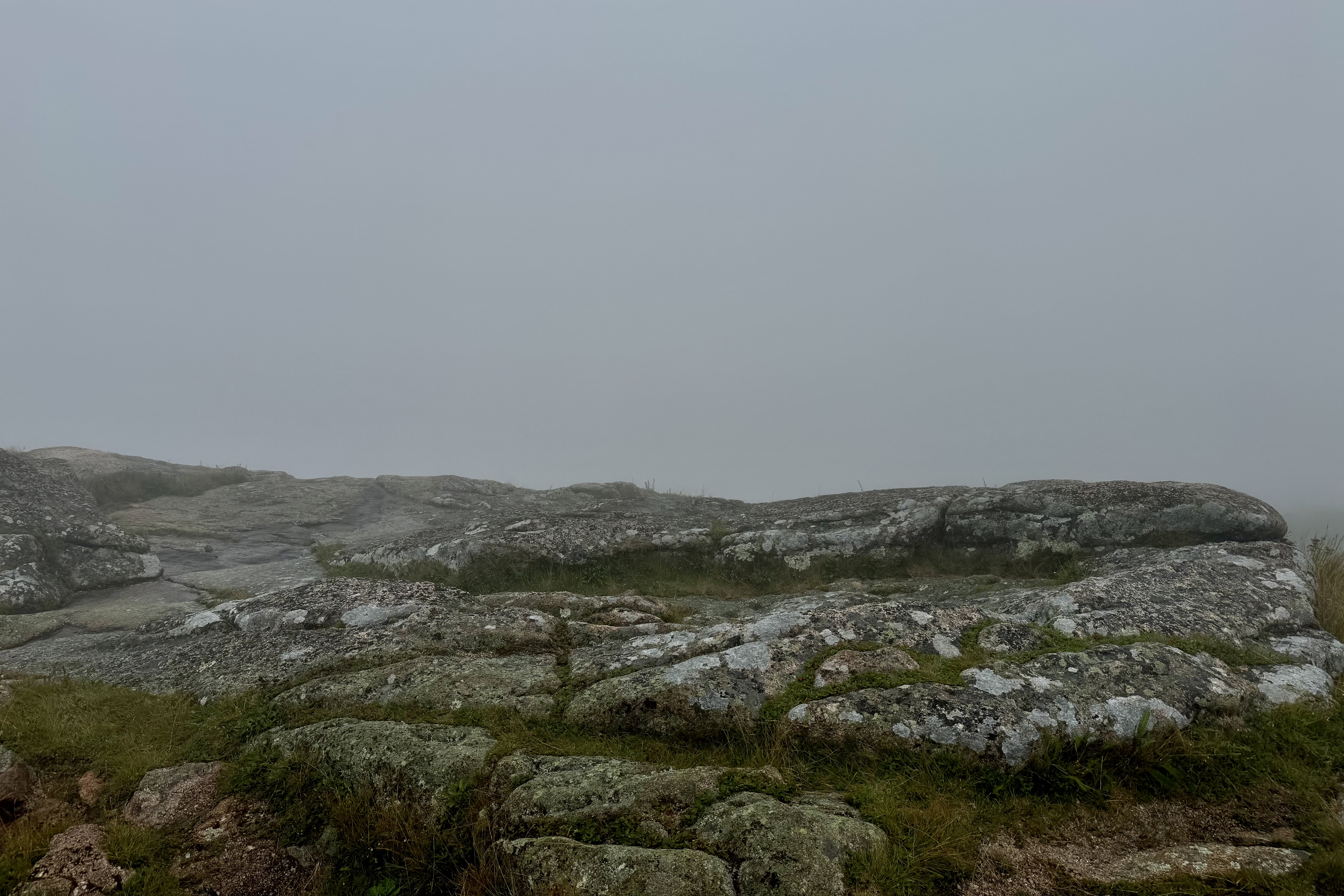 But a part of me irrationally thought perhaps the fog would lift or there would at least be a brief break to witness what is describe as amazing vistas around. NOT! The fog was thicker, the rainy mist thicker, the wind stronger. Not to be daunted I prowled around the rock faces, hiked the Cadillac Summit Loop Trail, bracing myself against the wind all the while, and then got in my car, removed my dripping raincoat, found a towel to dry my hair, and blasted the the heater on high. I was not liking Acadia National park very much.