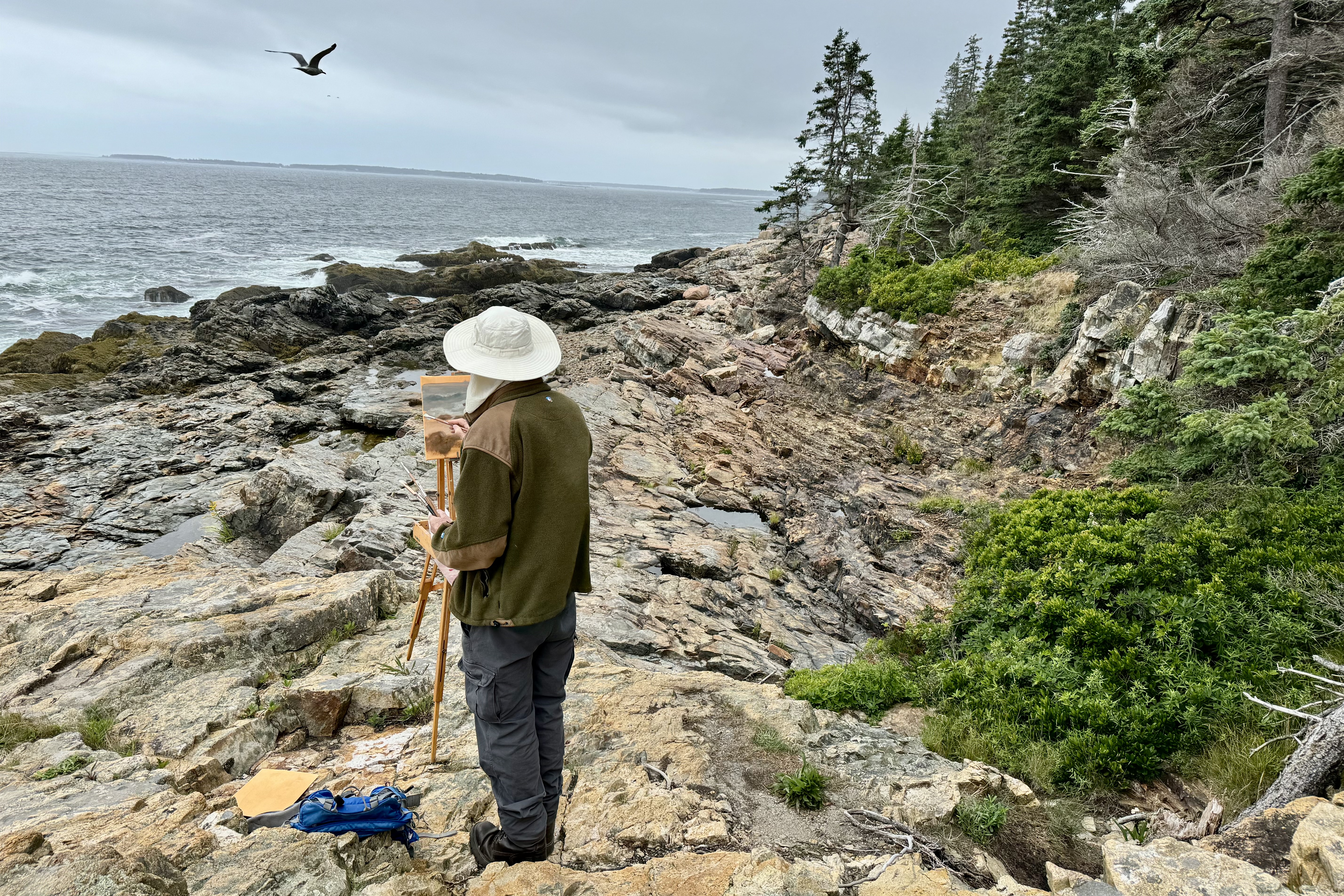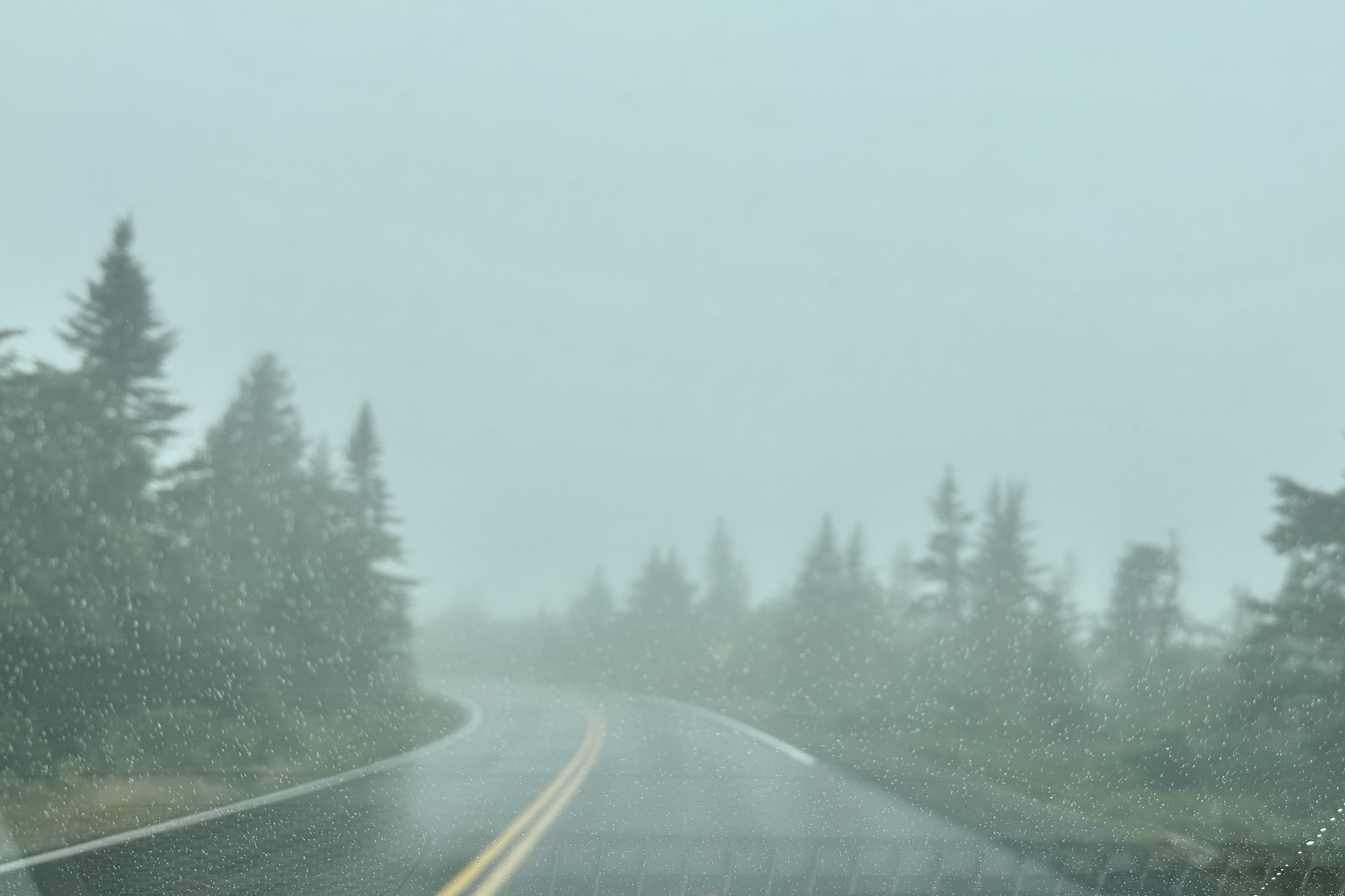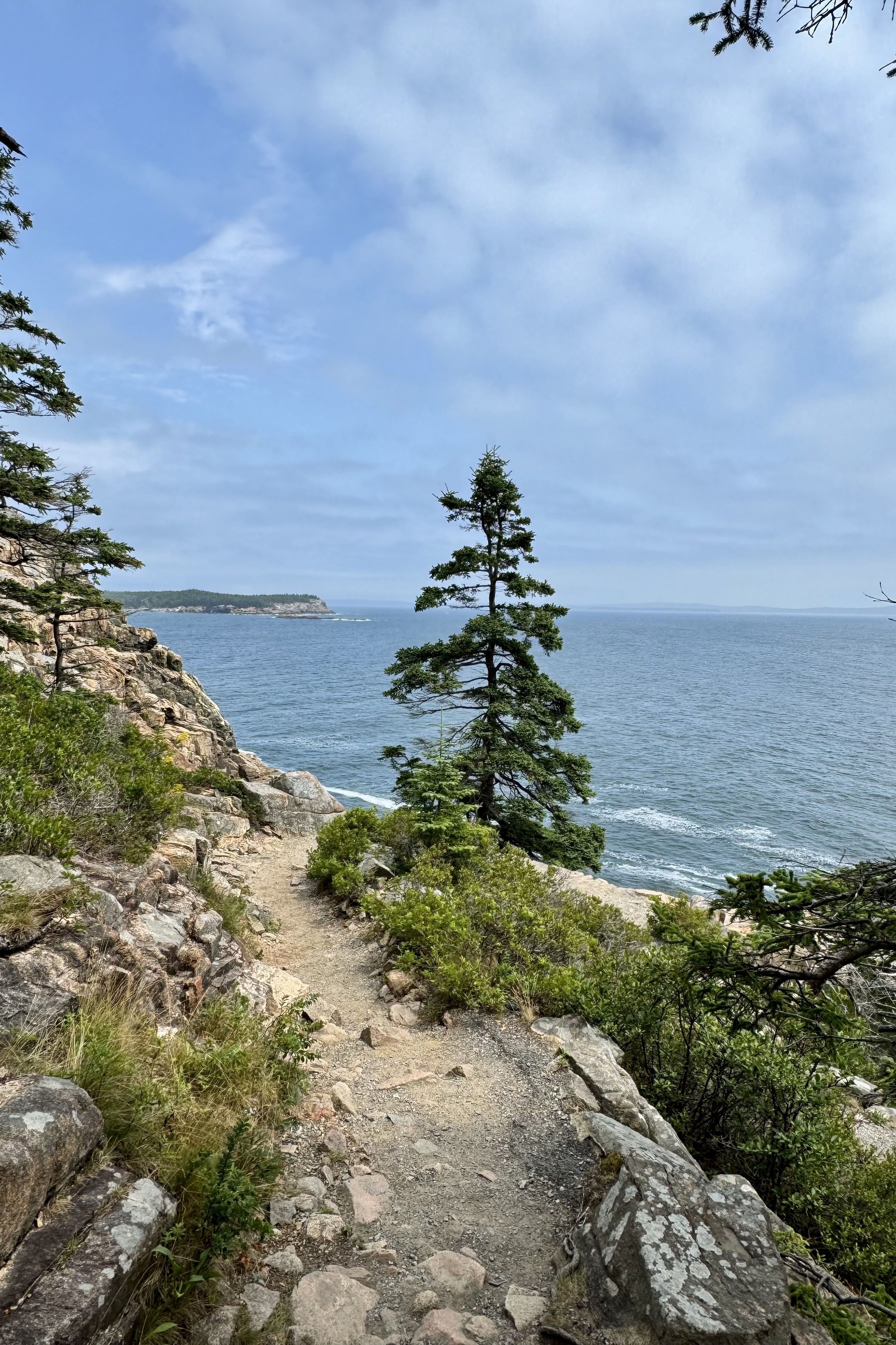 The only way to drive the Cadillac Mountain road, One of the “premier” experiences at Acadia is through a reservation system ahead of time. I had reserved a spot for the 11:00 am hour. I knew the prospects were pretty dim for feasting my eyes on some spectacular vista of the harbors and waters surrounding Acadia. With time to spare, I drove down to Otter Point and though the craggy rocks of the coastline were visible, a shroud covered everything mid-treeline and above.