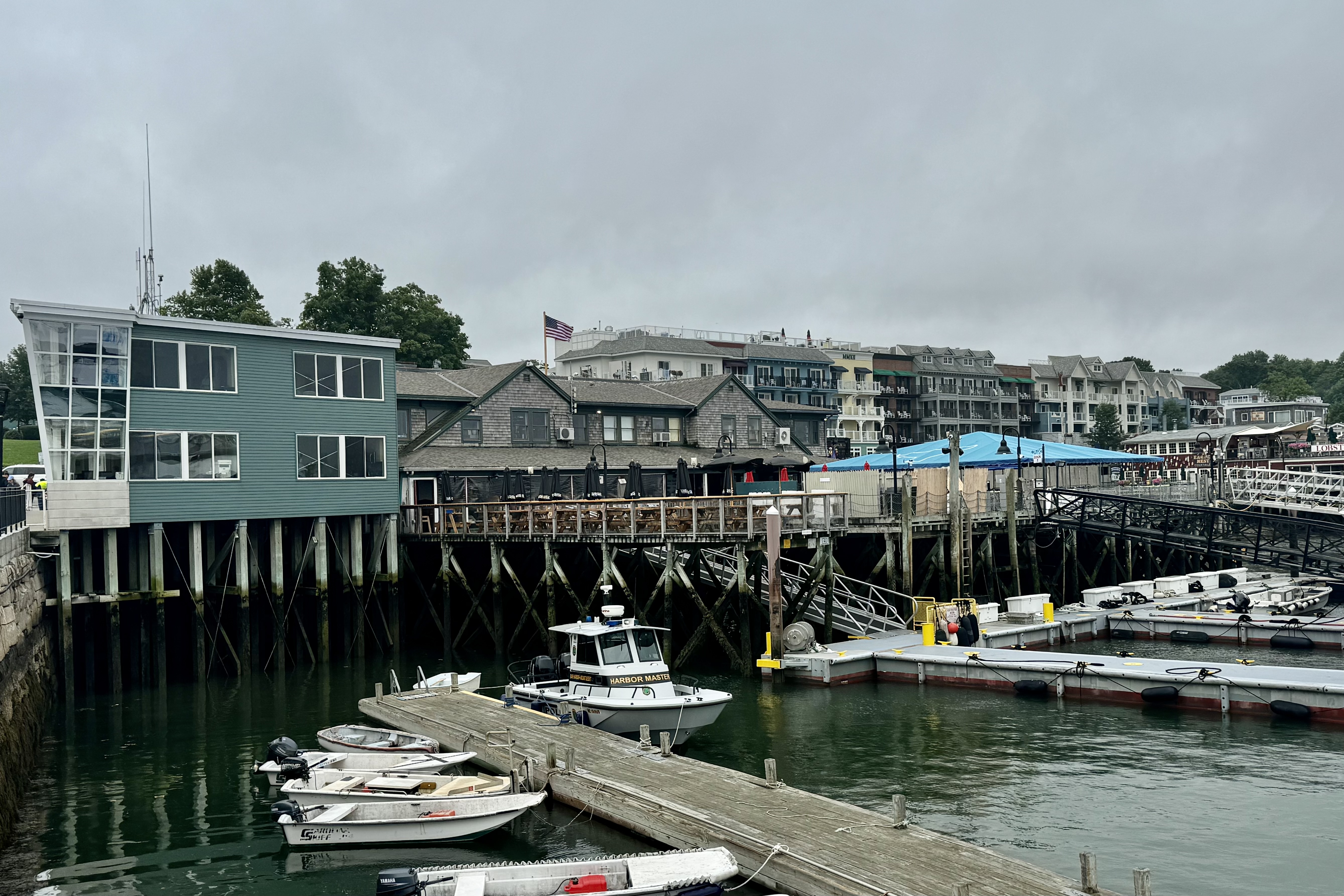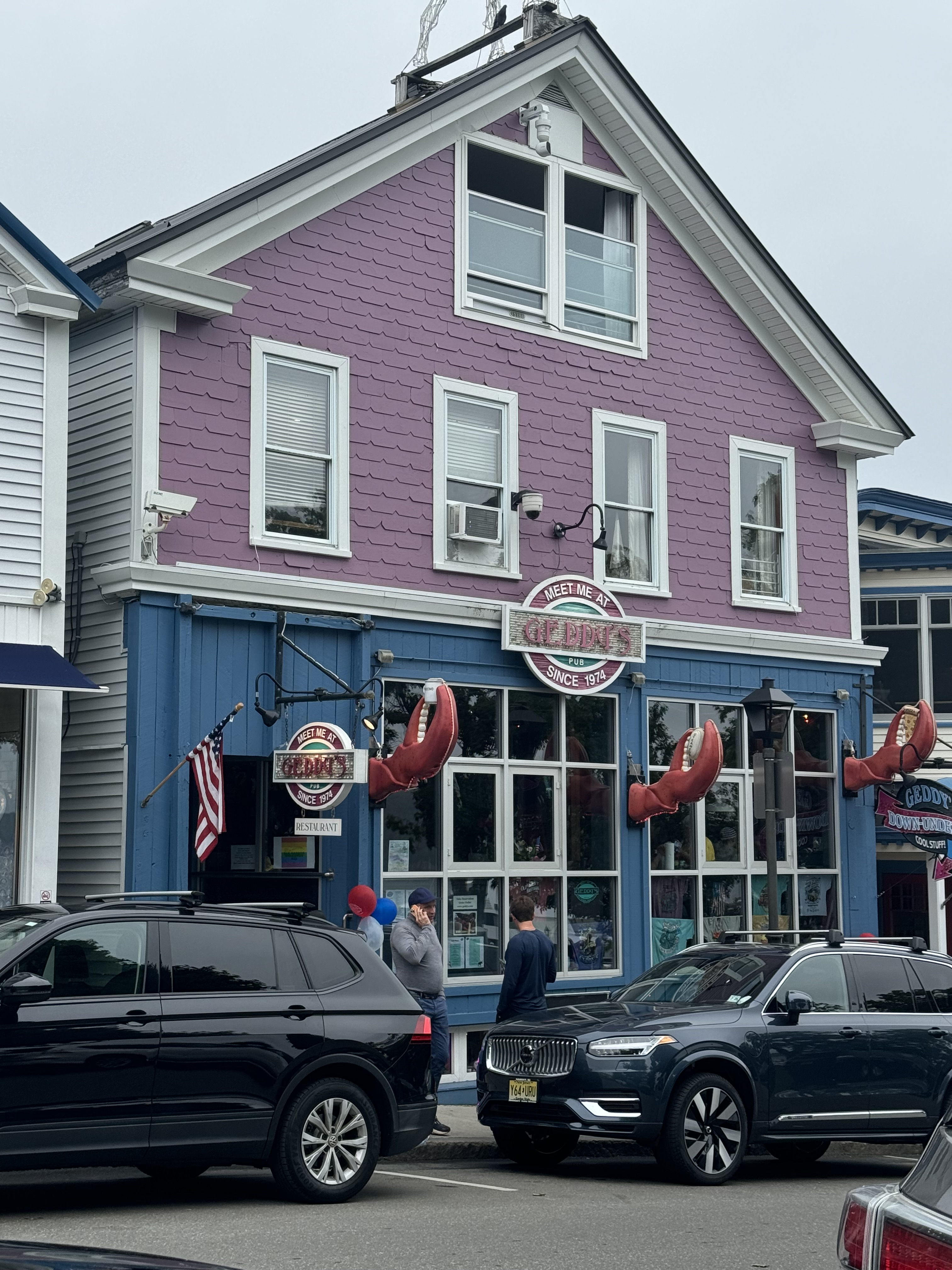 Returning to the main visitors center, I could at least get my park stamp and managed to spend some money – an alternative activity when the weather sucks. I heard tell that Jordon Pond is one of the favored activities in the park. After fixing a sandwich from my trunk kitchen, I started driving toward there when my car made a hard left turn towards Bar Harbor. Well since Lady Spitfire headed that way, it might be a good time to check it out . Naturally there were throngs of people on this miserable day, engaging in shopping therapy to assuage their disappointment in the weather. I fortunately pulled into a full lot and I knew parking would be a problem as I had witnessed the mile long line of cars parking on the road into town. I somehow had the good fortune of being almost up to a car whose tail lights went on and was leaving so I jammed on the brakes and voila Lady Spitfire pulled right in and paid $2.00 for 30 minutes to walk about town.