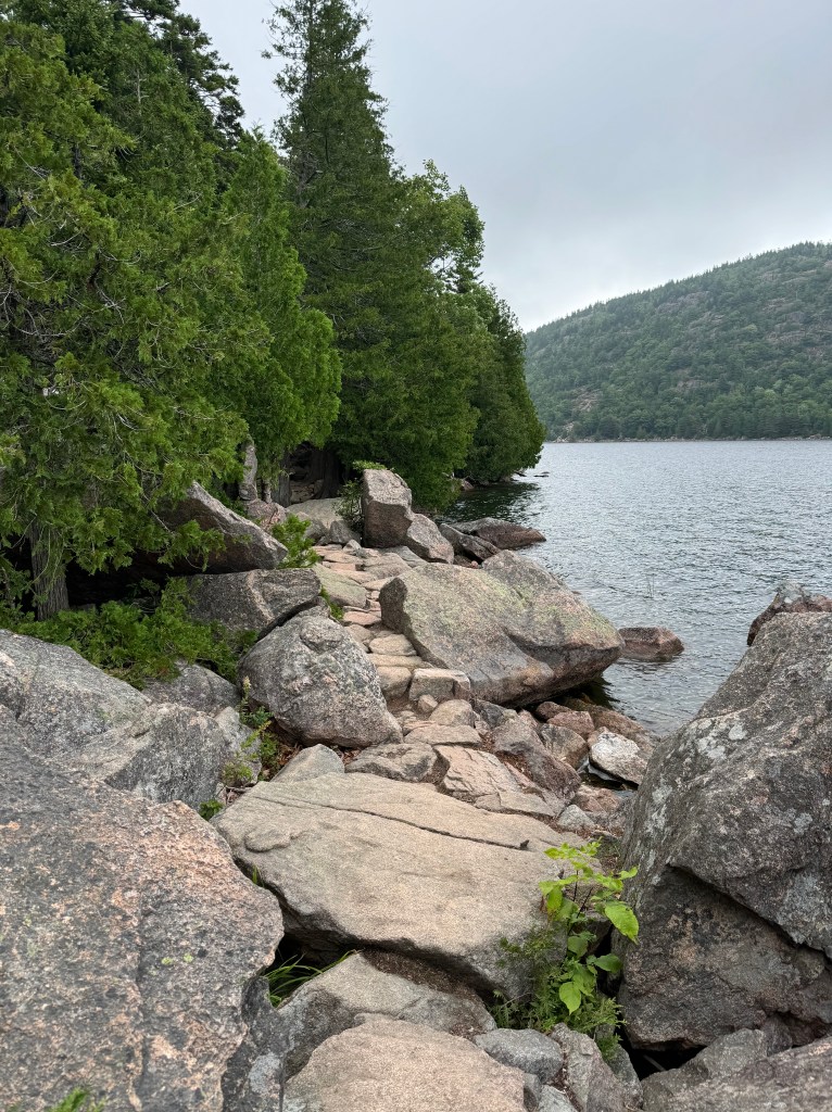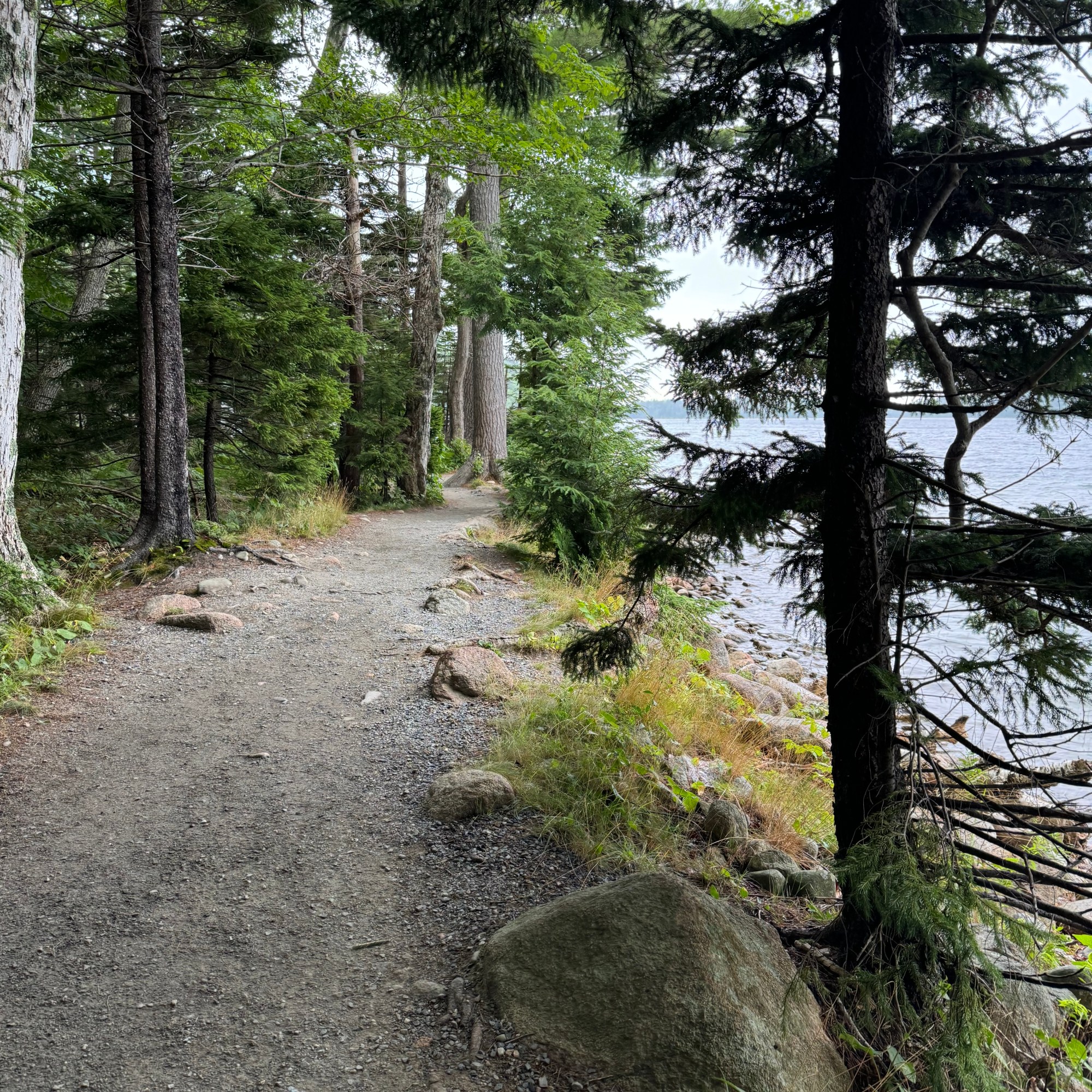 I arrived at the Acadia National park on Mount Desert Island in Maine. At the Hulls Cove Visitors Center visitors center I discovered that the campground I was staying at was a 25 minute drive south on the other side of Bar Harbor. After collecting ideas of things to do from the Park Ranger, I headed to Blackwoods Campground. It definitely lives up to its name as it is nestled in a dense forest of fir trees with minimal sun and is quite damp and humid. Per usual, I drove in arcs trying to figure out the layout and where in the heck the signs were as to which arc I was on. But at least I got it on the second go round. Within minutes I knew the new “Loud Family” was kitty-corner from me. When writing this 4 hours later, there has been no let-up. I wonder if they stopped to eat or just took turns between bites to keep the uproar going. My inner guide kept encouraging me to say “Isn’t it lovely what a wonderful time they are having.” I was almost an insurmountable challenge. But in no time I was set up and ready to sit back and relax. One great surprise here was having cell phone service in the campground. Guess we were close to Bar Harbor towers. So I had my “normal” Facetime visit with son Nick and grandson Luke which felt awesome in the dark woods holding a flashlight on my face.