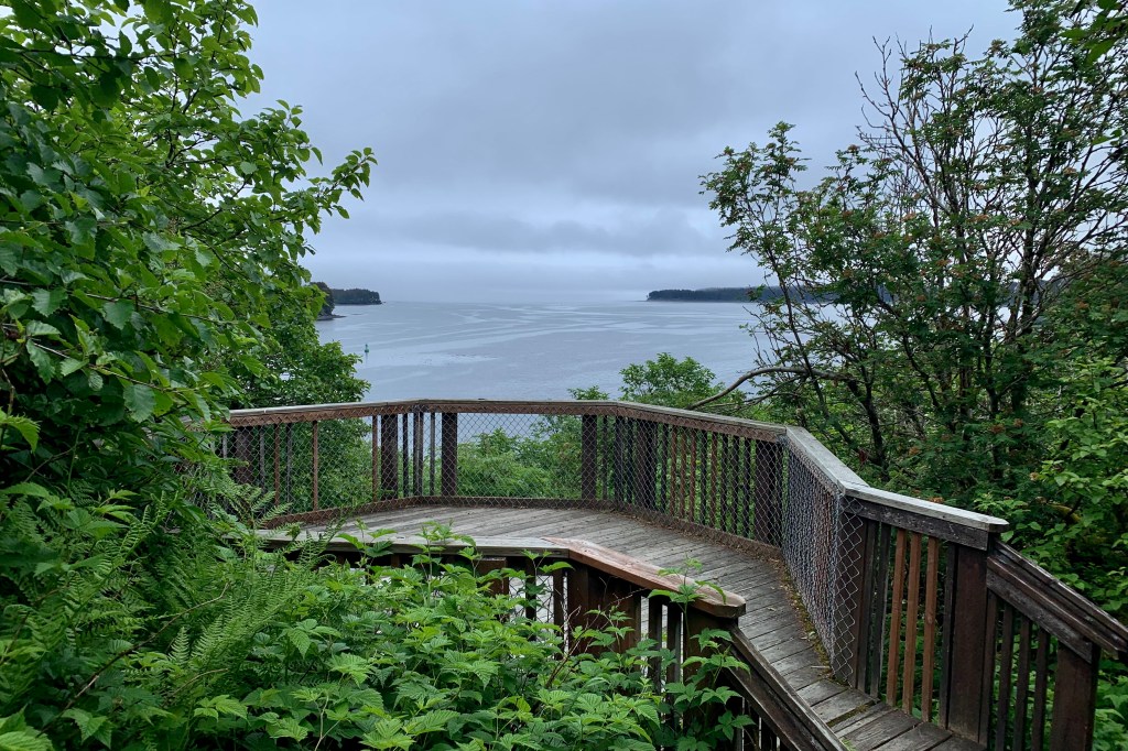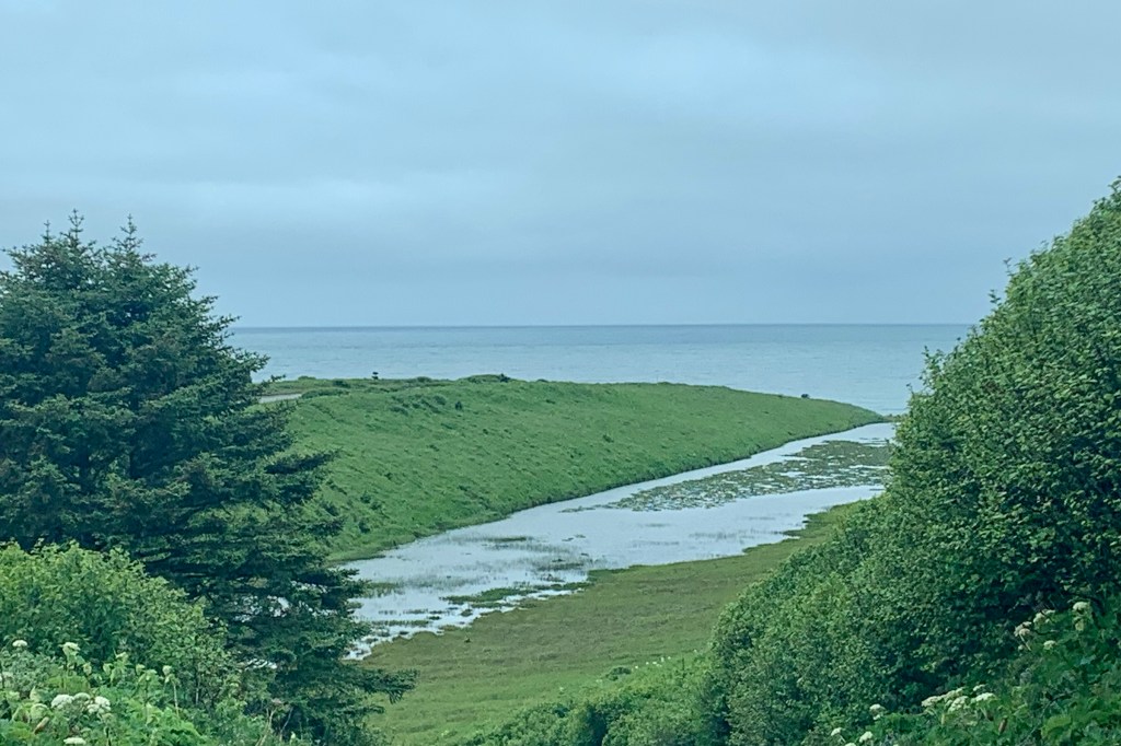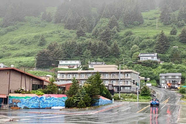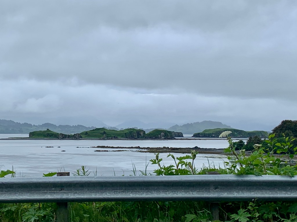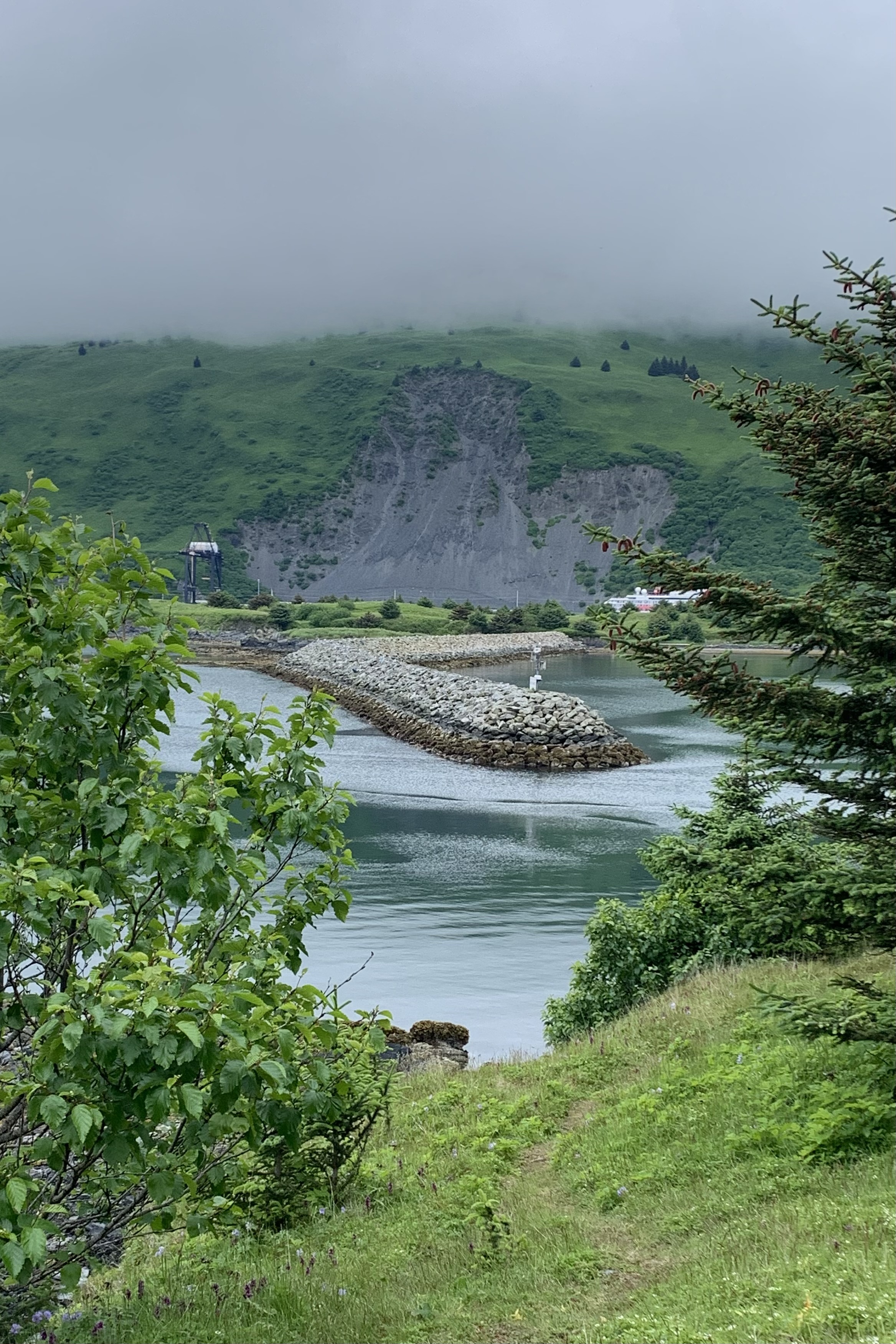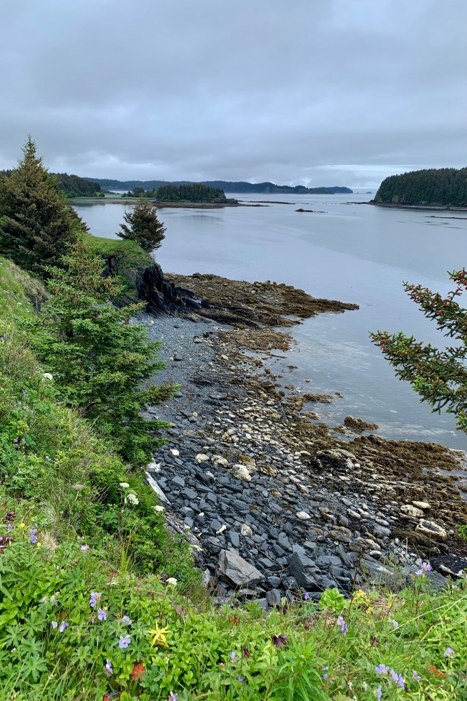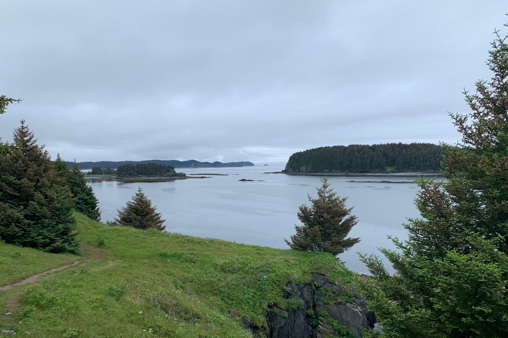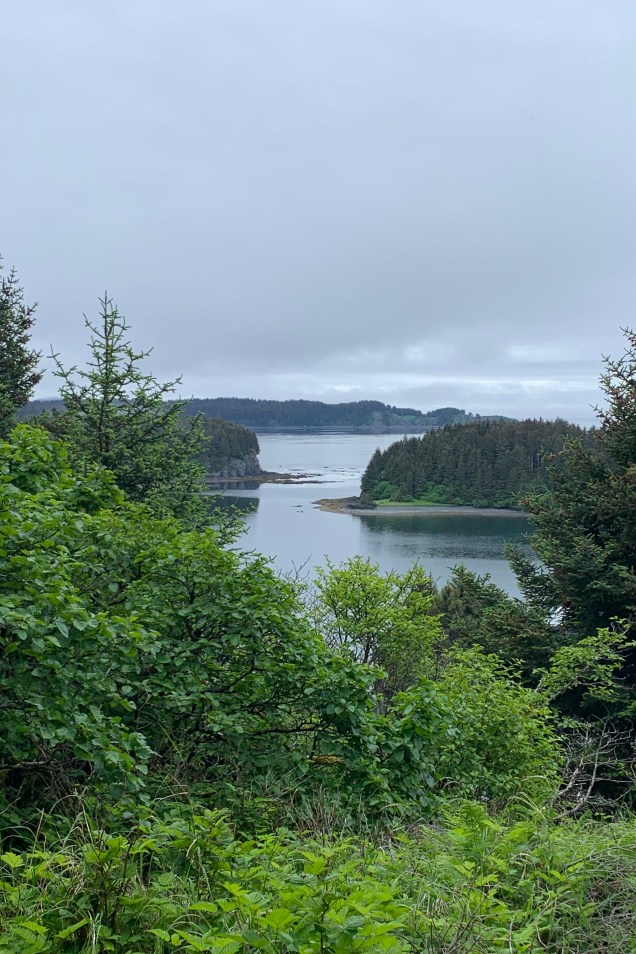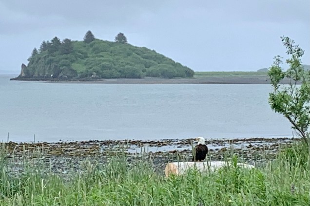 As we ferried along the captain would maneuver close to shores of Strawberry Island, the Marble Islands, and Tlingit Point for better animal sightings. By count birds far outnumber any other wildlife sightings. Thousands of seabirds nest on cliffs and rocky shores within the bay. I don’t have the patience or acuity of vision (or very good binoculars) to be a successful “birder.” but spotting the puffins and the Arctic terns was a treat. The Arctic tern is my hero and is famous for migration since it flies from its Arctic breeding grounds to the Antarctic and back again each year. They are the ultra ultra marathoners of the avian species. The shortest distance between these areas is 12,000 miles. I surmised, just like our human snowbirds traveling south in the winter, these terns seek perpetual summer and lots and lots daylight. The Tufted Puffins, often identified as “parrots of the sea” because of their bright coloring were not behaving like the adorable tufted puffins I’ve seen in the penguin exhibits at aquariums waddling . They were far too busy foraging for their own food, swimming, and steering them selves around with their web feet preparing for a dive for the fresh catch of the day. . Also spotted were Black-legged Kittiwake, Eagles, a variety of Gulls, especially Glaucous-winged Gull , which is basically a large white headed gull. They were plentiful on the Marble Islands. I took almost no photos because I do not possess one of those cameras with massive lenses especial designed for wildlife photography with their auto focus and zoom lenses and look like they weigh a ton. My 5 year old iPhone camera suffices but does’t do the job that these heavy behemoth expensive cameras do. I already have too many photos of unidentifiable minuscule blurred dots in the distance.