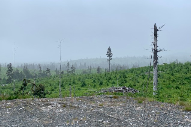 It seemed like we were just tugboating along – I surmised it was the heavy fog— but I came to realize that there are definite noise restriction and speed zone areas designated so as to protect all wildlife, but especially to protect the harbor seal and whales. This definitely is not an attractive area for the jet skiers of the world to congregate and hold a convention. I am all in on respecting the wild land, air, and sea creatures that we share this earth with and grateful for the quieter ride that exist because of the myriad of boating restrictions. Think about it. Would you relish a six foot long 250 pound harbor seal undulating like caterpillar through your living room or otters webstroking in your swimming pool. Perhaps we need to think a whole lot more about our roaring motors churning through their living room. This definitely made for a most pleasant three hour journey to get to the first glaciers. A National Park Service Ranger kept us informed about what we would be seeing (or not seeing) along the way as we moved from the rainforest area of Glacier Bay to the guano and lichen-encrusted rocky islands of the bay.