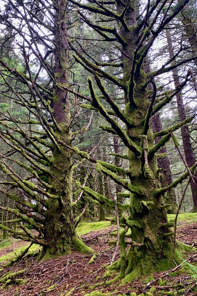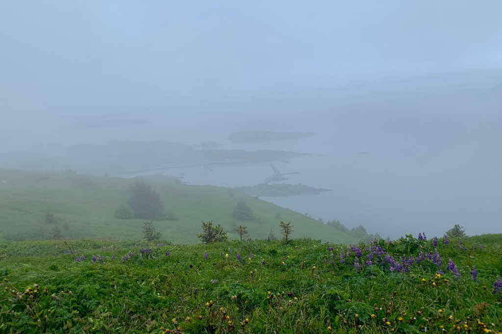 As far as spotting the large mammalia, a brown bear was seen sauntering around a beach on Tlingit Point, an occasional whale spouting or breaching in the distance, sea lions on the rocks but no proximate heart stopping encounters with the ship. Perhaps these Glacier Bay inhabitants too, just like many humans , prefer to hunker down on a foggy rainy day and thus opted out of putting on a show for the tourists encroaching into their habitat. I was especially enchanted by the “raft” of sea otters, churning through the water. I noticed their preferred swim stroke is by far the backstroke (mine too) and I spotted them in large numbers hanging tight with each other traveling in tandem. I wonder if it’s like a pace line in cycling where you cycle into the slipstream of another cyclist and let them “pull” you along. This was an “otter version” of the pace line.