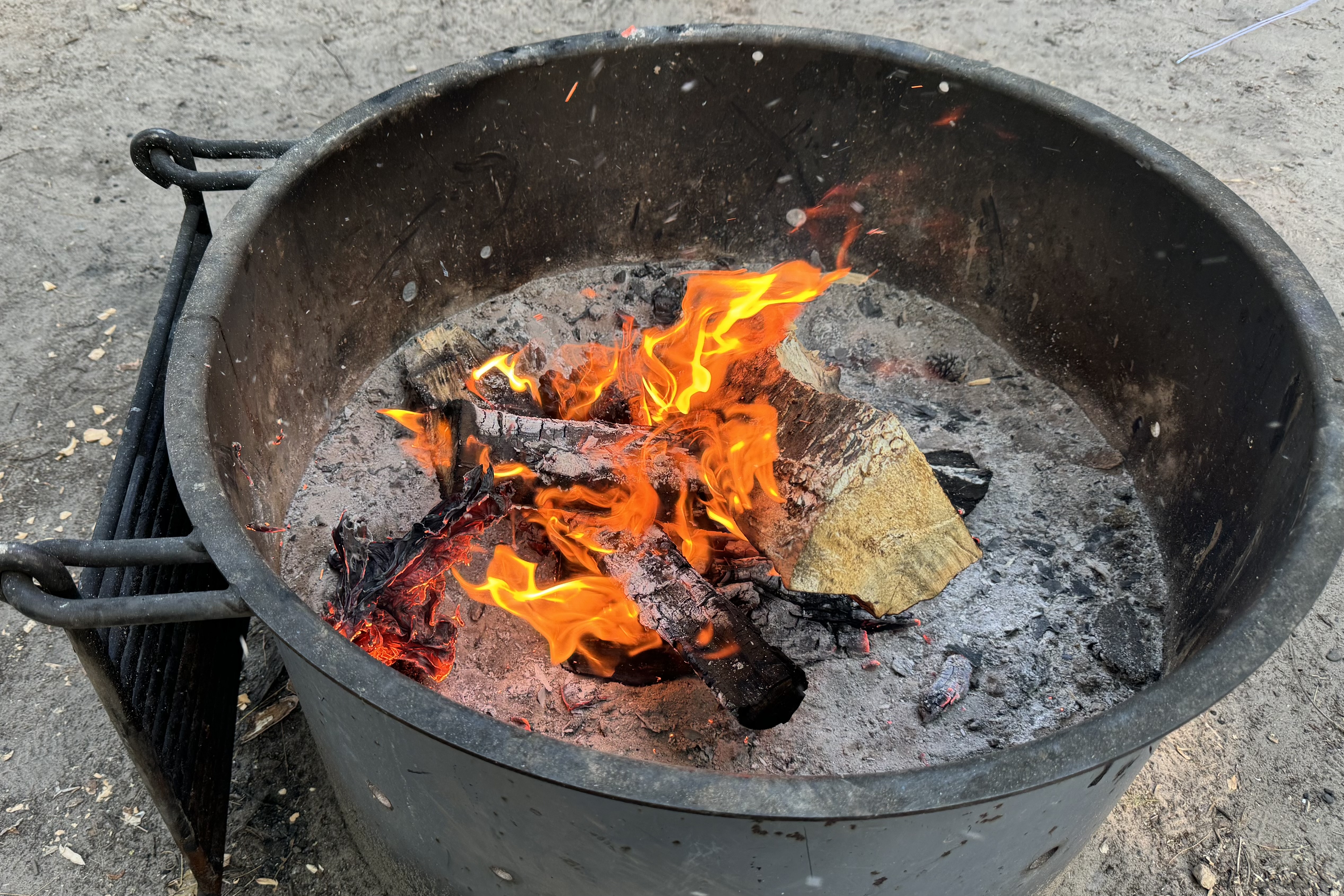 It had been an excellent day with so much strong and bold scenery. It was time to head back up to settle into camp. Cook. Write. Organize and enjoy the sunset all the while again inhaling the wafting fragrance of hot tar.