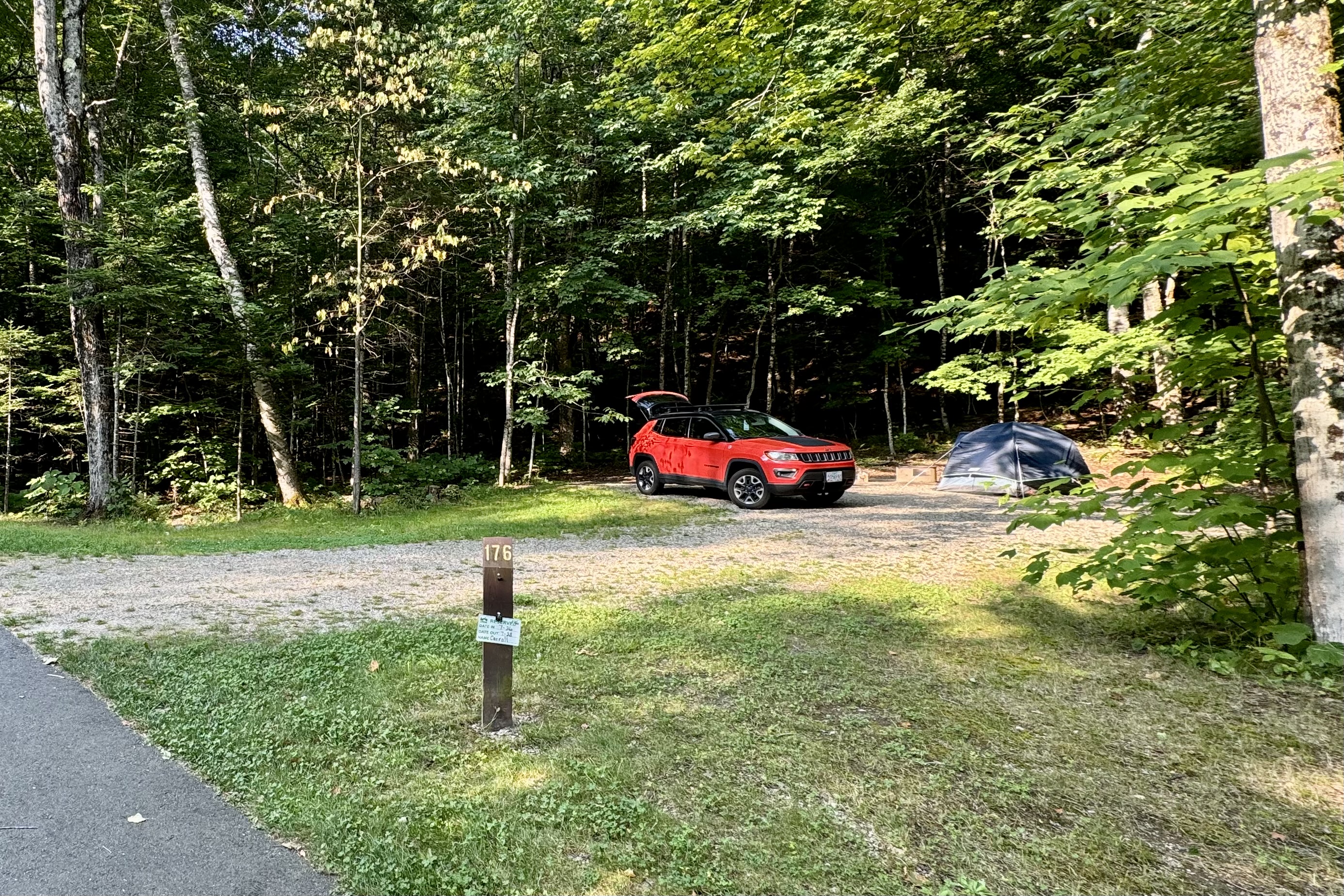 Then, first a strong wind gust and then the rain blasted in so quickly that I ducked into the tent but was wondering if perhaps I should have rode it out in the car. But there I was in this flimsy nylon cloth shelter with its compromised polyurethane coating, feeling scared (I don’t scare easily) and fearful, since it felt so close I was sure that the lightening and its companion thunder were about to both fry me and deafen me. I was certain a tree would come crashing down on my not so safe place and the tent would sail away with me in it to OZ. Of course, if it had not been laden with me and all my stuff, it would have blown away. This massive storm raged on for at least a half hour or more and the thunder was so loud and so close as was the lightening, all of that time. Talk about powerlessness. I could not do anything but just sit there and be frightened.