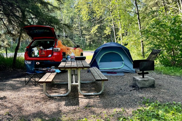 I have come to the realization that every campground has to have a loud family. So tonight I have the good fortune to be on a site next to “the loud family” that is having their yearly reunion of all the sibs and cousins. They are having a marvelous time and sharing their celebratory mood with a large swath of the camp ground around them. But I recall a day when we might have been dubbed the loud family by some others when our family and/or friends gathered, so I just smile and comment on how wonderful it is to be able to be together. I was in my tent reading and wondering when the raucousness would end but at almost exactly 10:00 it went silent. I wasn’t aware until the morrow that the quiet hours bean at 10:00 pm.
