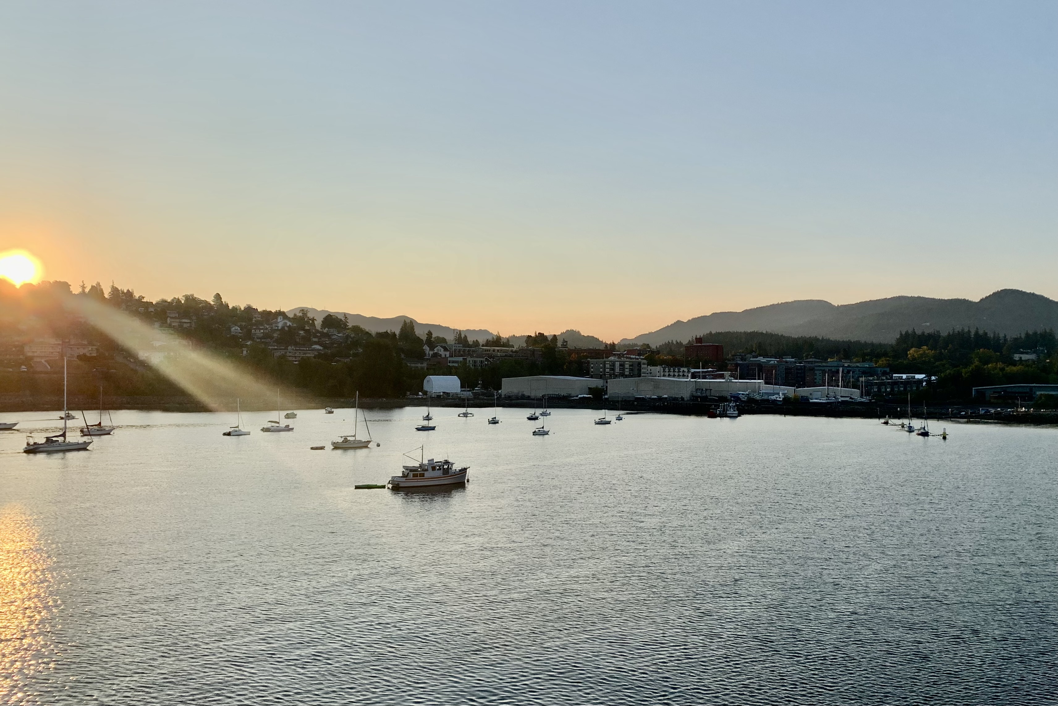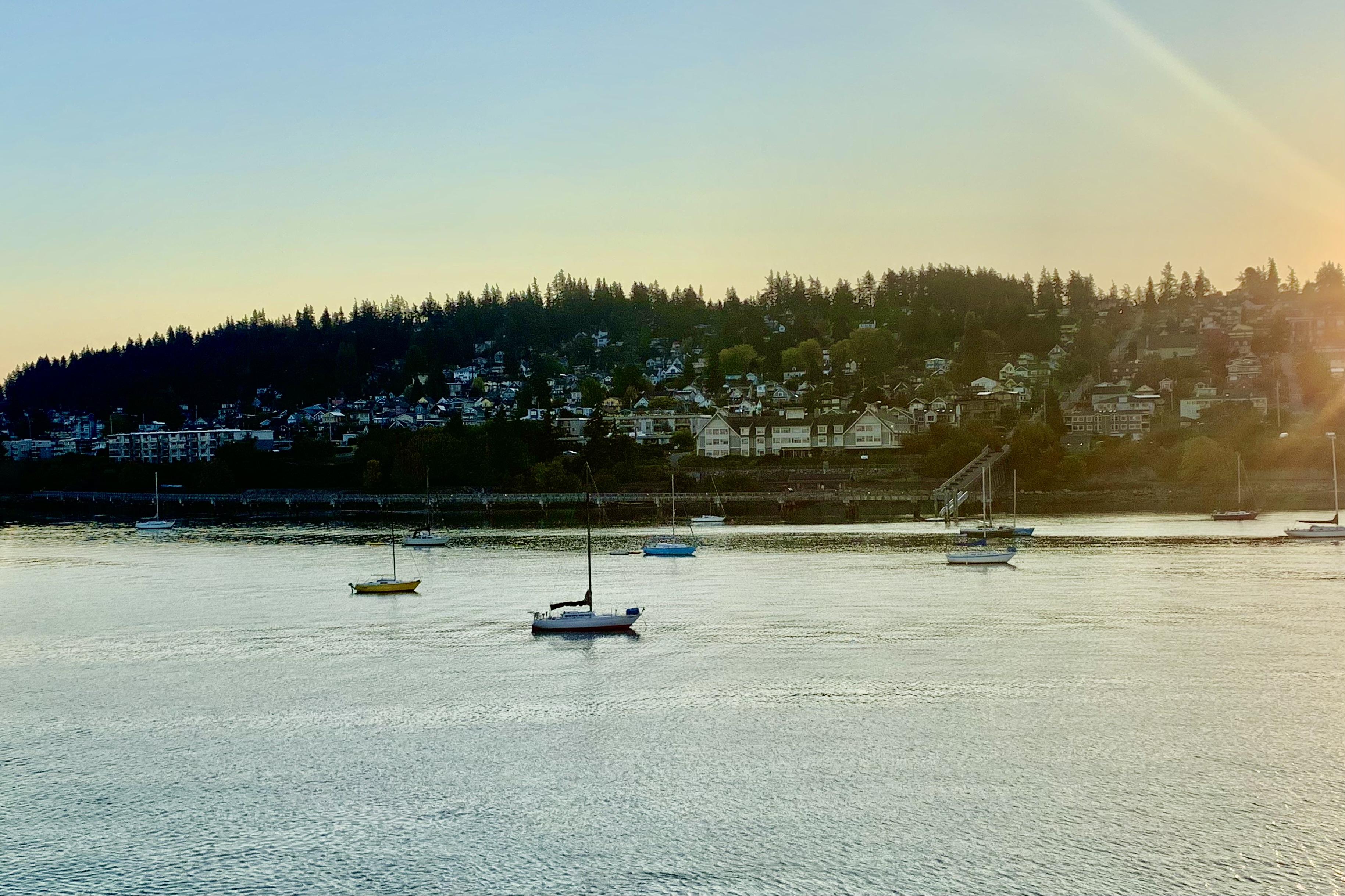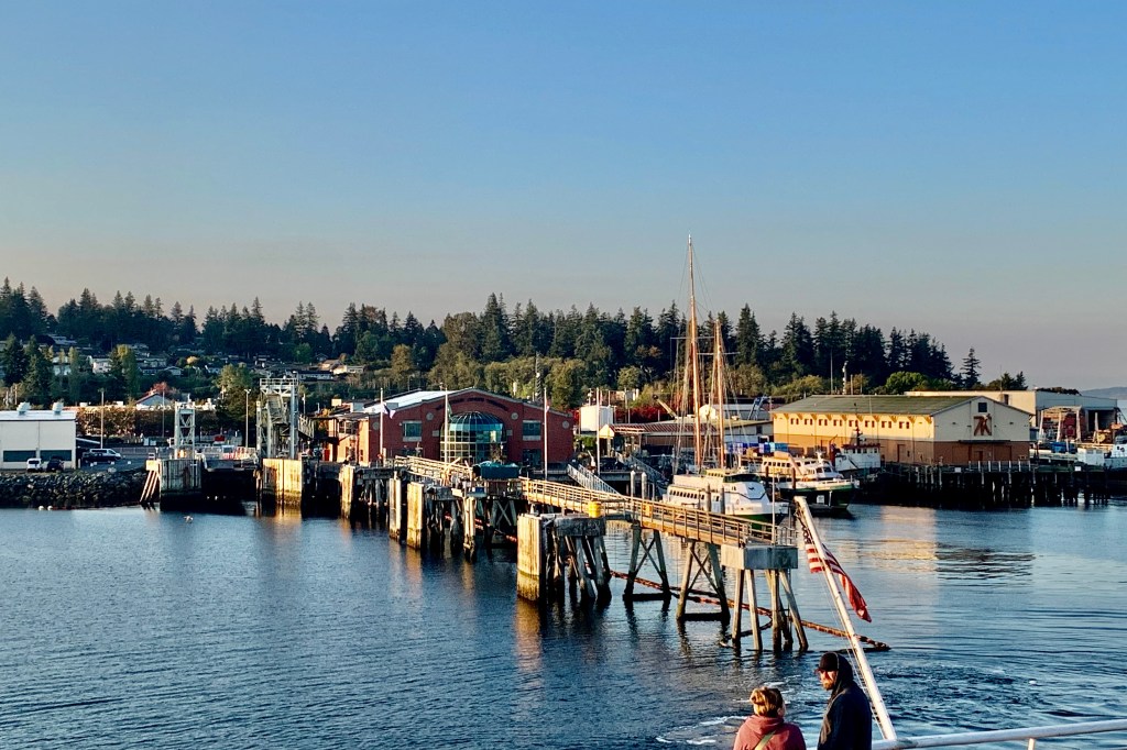 The very loud speaker broadcasting through the ship greeted us around 5:30 am and forceful banging on the door to hopefully awaken any stragglers who might be malingering and not ready to hop into their vehicles and tear out of the belly of the ferry upon docking, assured me that I would shortly arrive in Bellingham. Heeding the first summons to get ready, I was able to buy a cup of coffee and experience the a golden sunrise as we approached the Bellingham-Fairhaven Harbor.