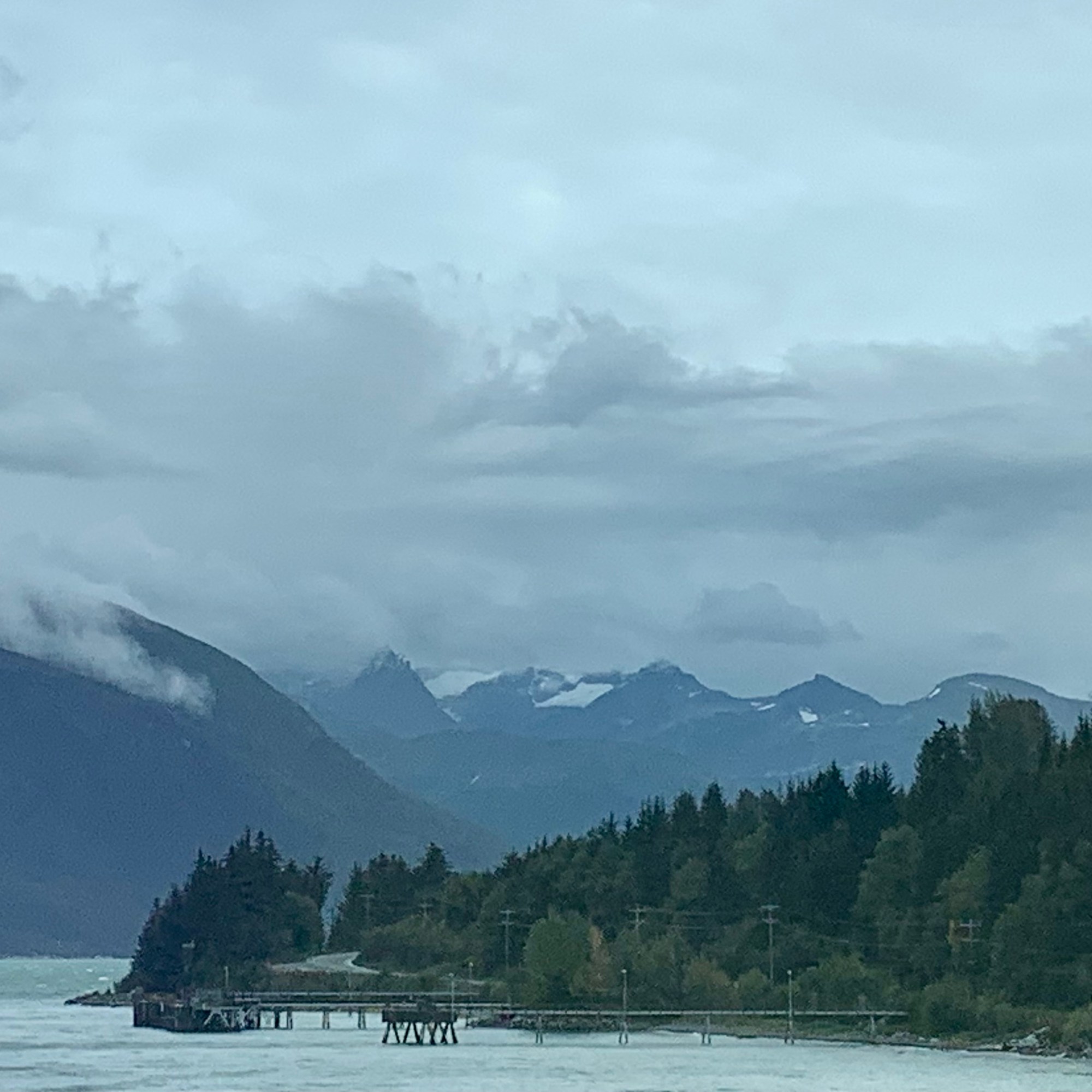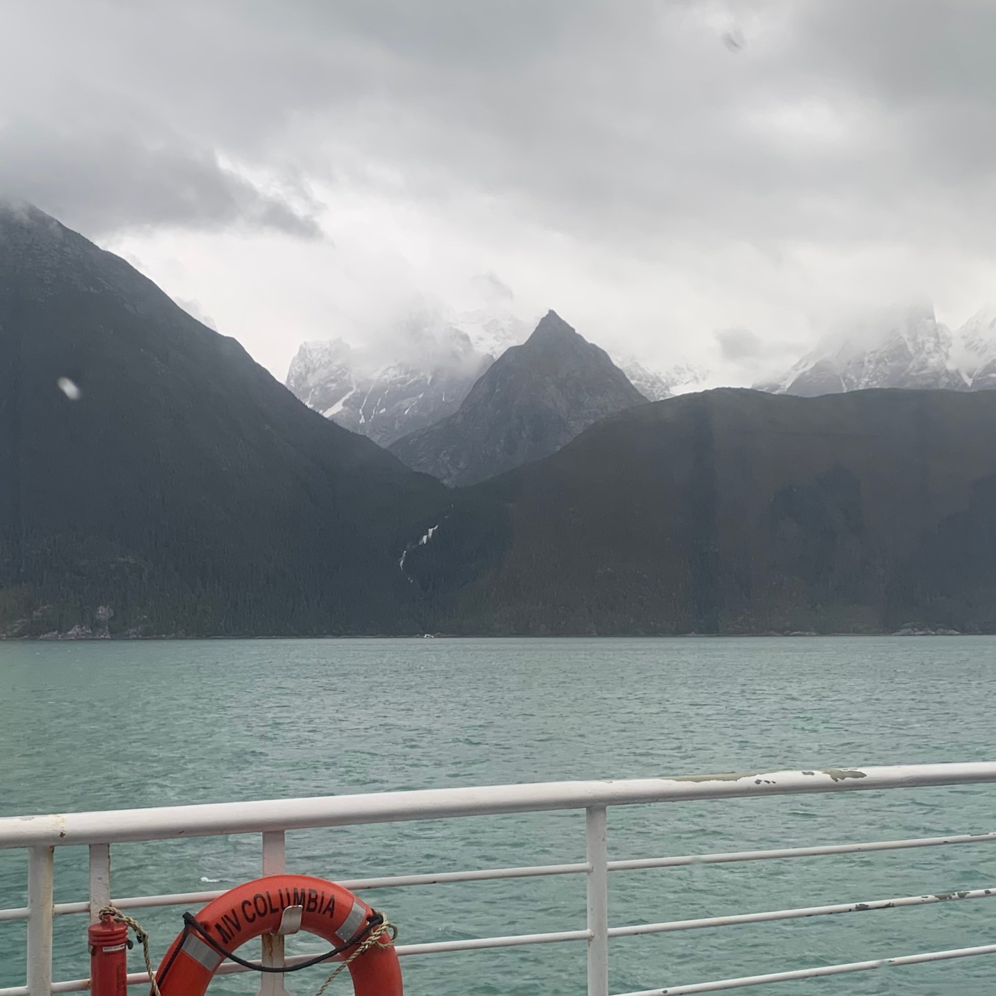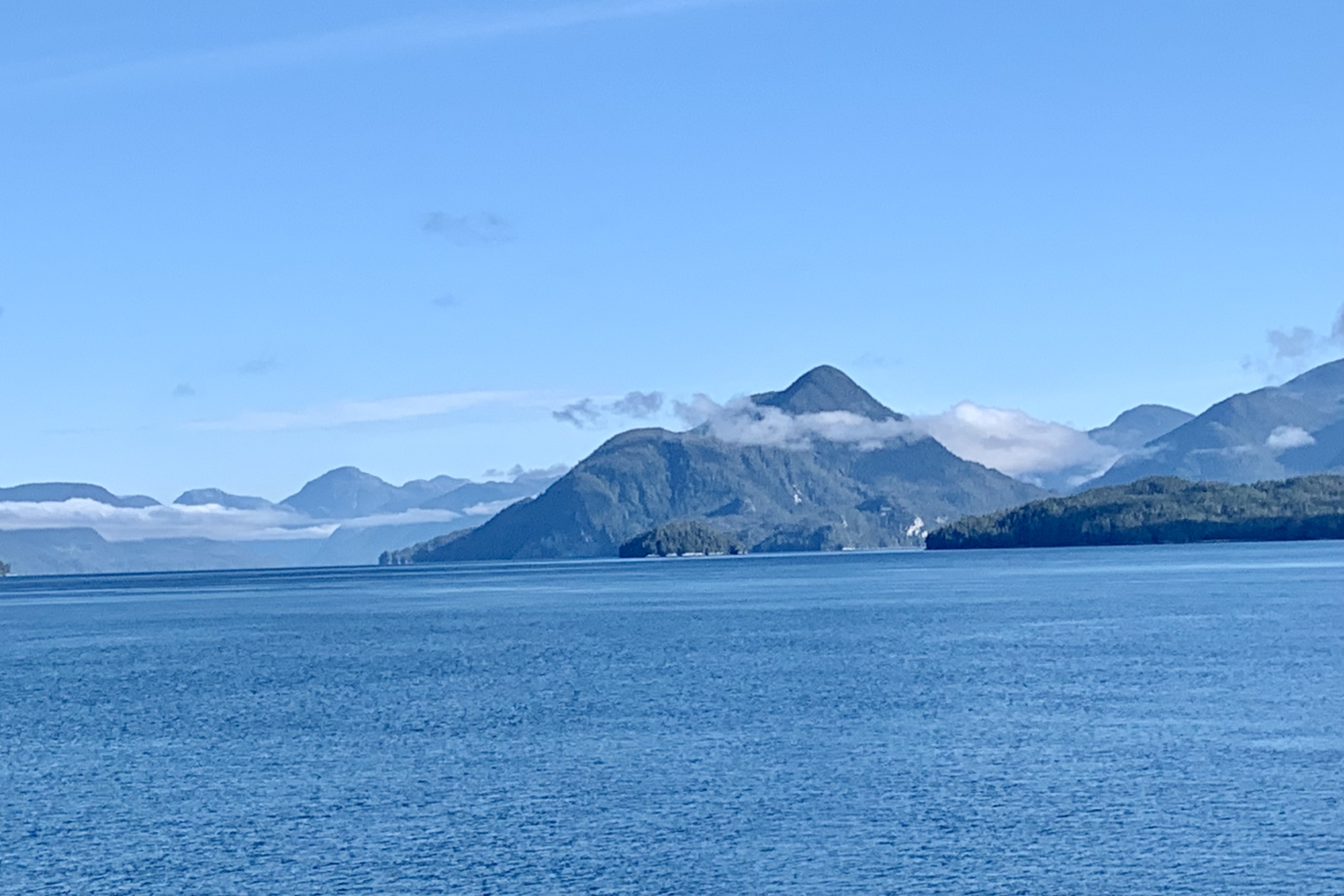 With fewer distractions, the following day was time to catch up on some reading and writing. Since there was no wi-fi available on the Alaska Maritime Ferries and very few spots with cell phone reception, it was a time for reflection, relaxing on deck as the day eventually turned out beautiful blue skies and scenery of forested islands and undulating mountain with rounded contours, an occasional jagged peak punched in between and shimmering ripples on the water. Overall the day’s journey was one of serene beauty and had calming hypnotic effect.