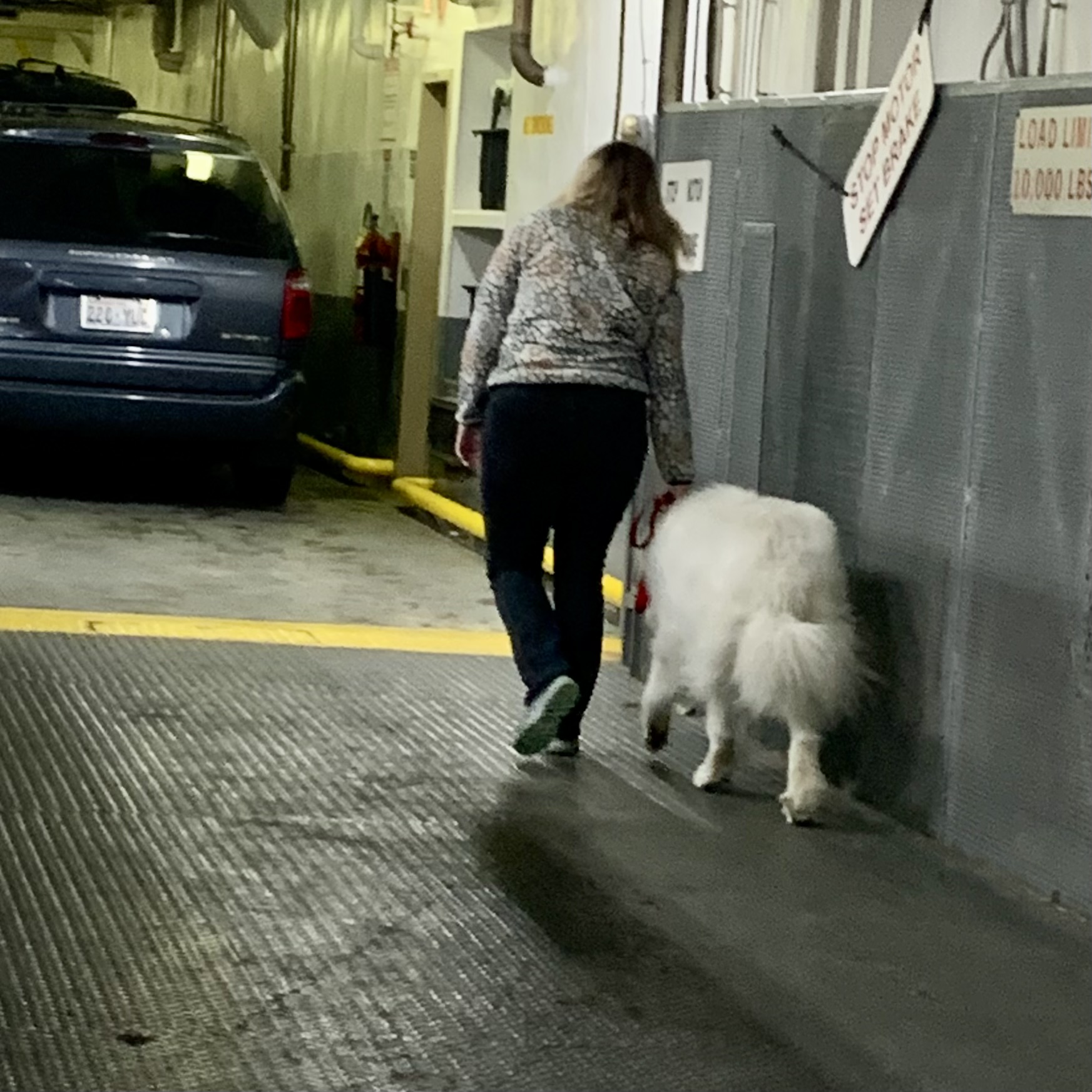 At most ports there is barely adequate time to visit the town which for the most part are designed to accommodate the many cruise ships belching out their passenger, fulfilling the need to spend money on the local “artifacts” crafts, and t-shirts (which are often made in China). Every port had minimally one and usually two or three of these massively huge floating cities (and 4 in the high season). Princess and Carnival Cruisers are definitely in competition for how massive of a cruise ship they can build. The Ruby Princess showed her ponderous self when I was in Glacier Bay in August, in Skagway now and in Ketchikan at the end of it’s cruise adventure. There was rarely a center of town berthing for our diminutive ferry so we often docked in an industrial area outside of town. Thus it was usually quite a distance into town with a need of sturdy walking shoes or use of public transportation. In Skagway “Ruby” was harbored adjacent to the center of downtown. BUT in the “Ruby” vs the Columbia match-up, the Princess does not allow you to bring your animal nor your car on board so for the many folks who can’t travel without their dogs, cats, birds etc. , (or cars) it is an opportunity to tend to the food and bodily function needs of the furry friends. Some caveats however- pets are not allowed on passenger decks or cabins and must be secured in vehicles or carriers. During “pet calls” you can hear the barking and howling of some very excited or distraught animals.
