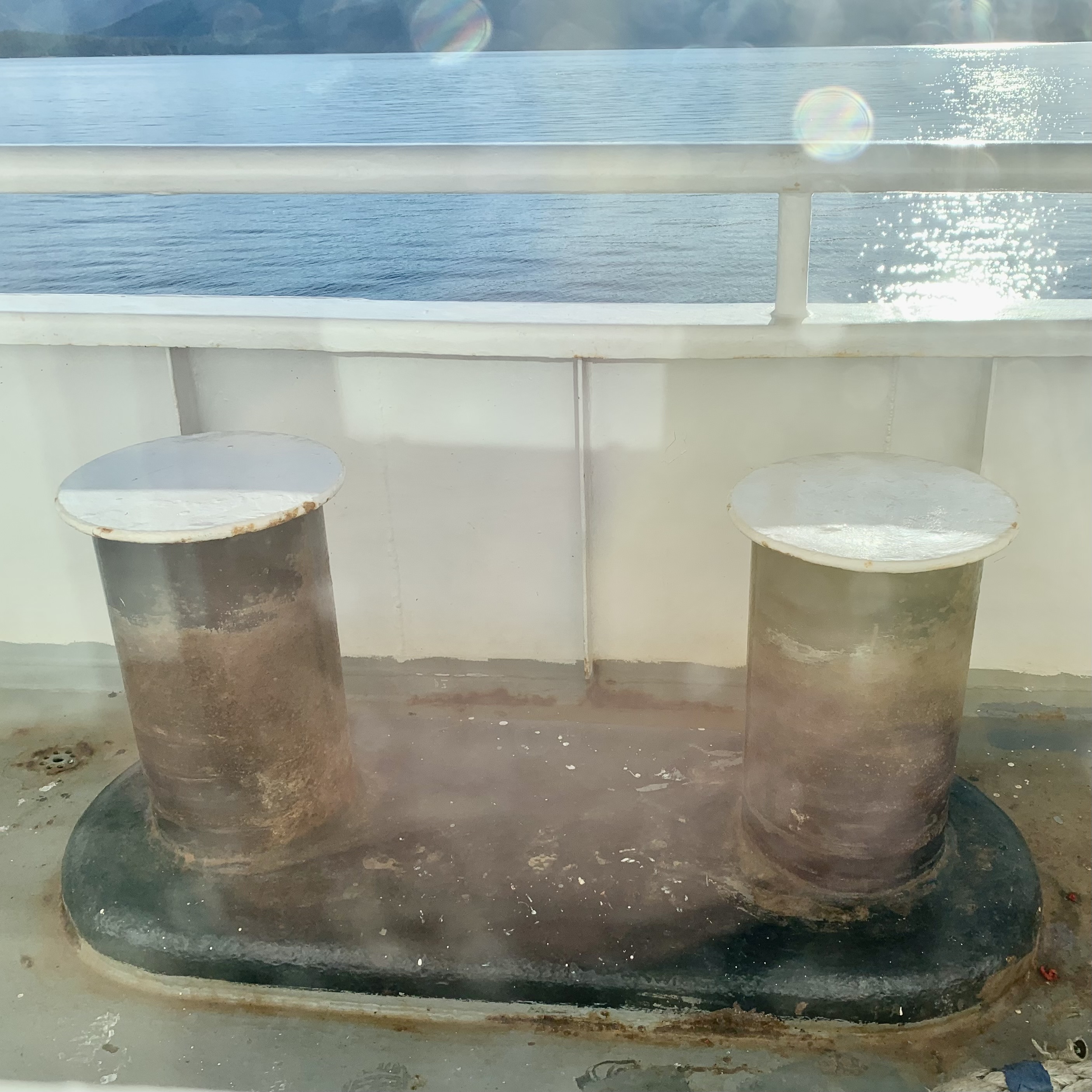 After the time consuming process of unloading and loading the vehicles and cargo we plowed onward to Juneau with a scheduled arrival of around 9:00 pm. By now I was ready to tuck in and was delighted when I awoke the next morning to blue sky and sunshine. I had totally missed the port-of-call of Juneau and now we were only a couple hours out of Sitka. I had been obsessing about the docking and vehicle loading process as my room was right over the cargo entrance door on the main deck below and the capstans were right below my window on the starboard side of the deck. At the previous port, the deploying and securing of the mooring lines, then 2-3 hours later the process of releasing and rewinding of the massive ropes, and the clattering the vehicles rolling on the metal ramp was quite a clangorous process. I doubt it was a quiet process so I must have been dead to the world soothed by the gentle vibrations and hum of the engines.