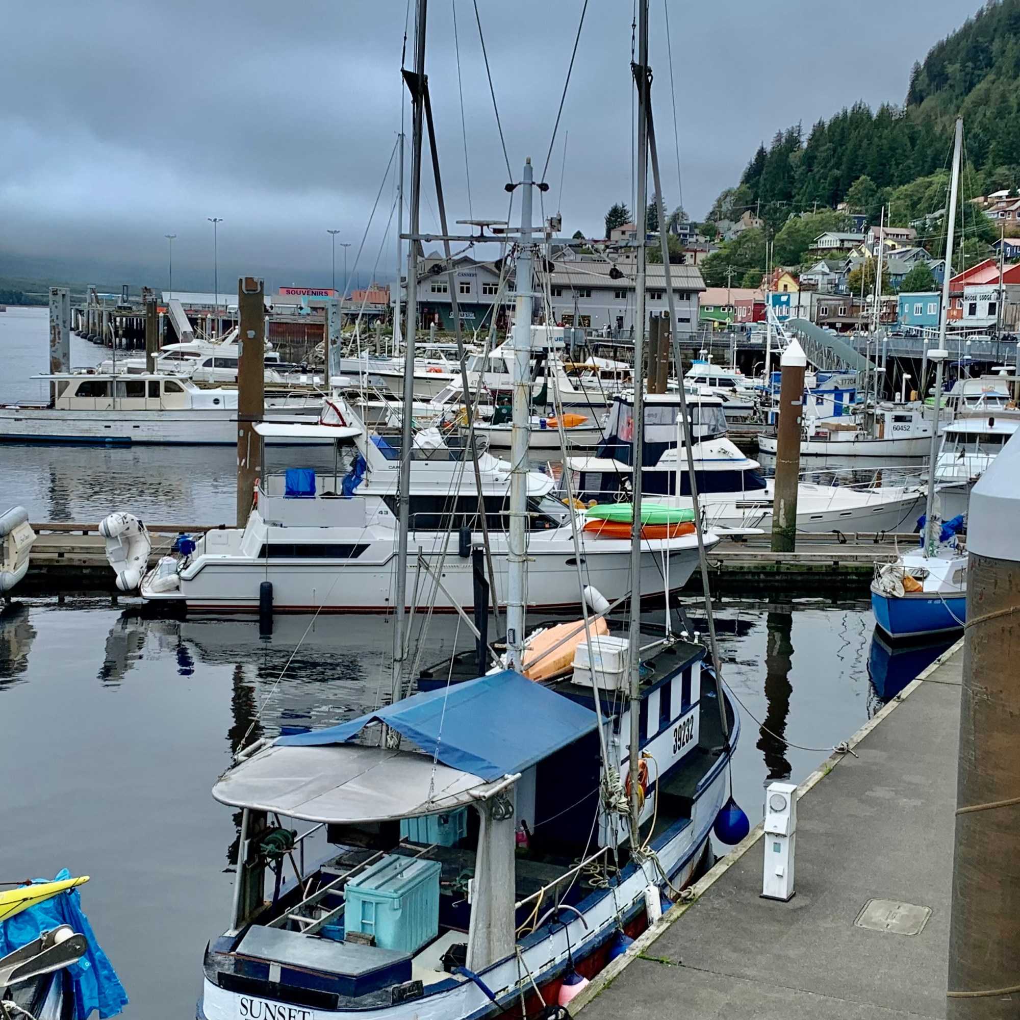 During the meander back to the Columbia, I wanted to experience the heartbeat of the other industries in addition to tourism frenzy contributing to the economy of Ketchikan as I viewed docked along the harbor colorful fishing boats, cruise ships, yachts, ship yards , cargo container storage lots, and local businesses.