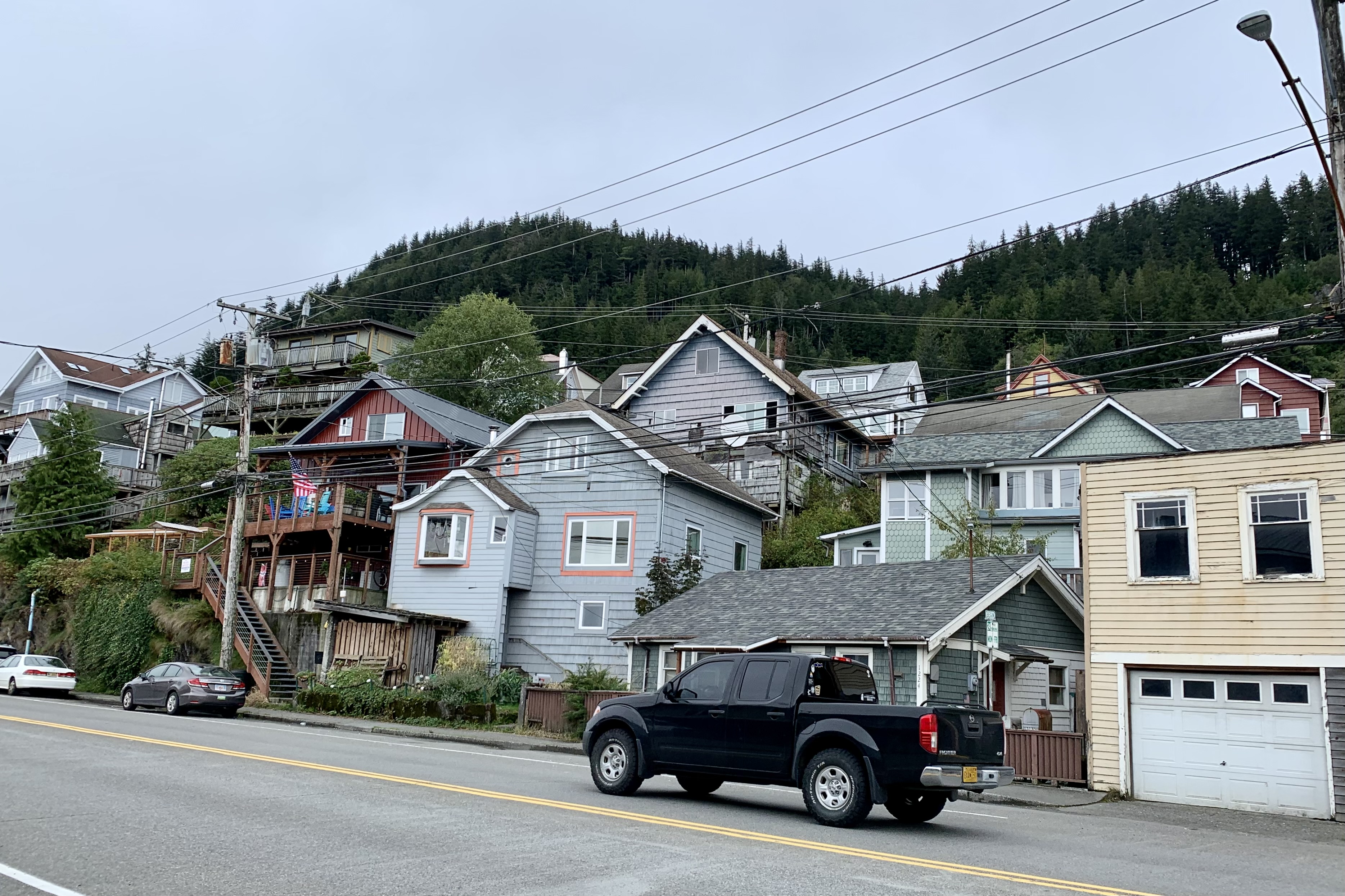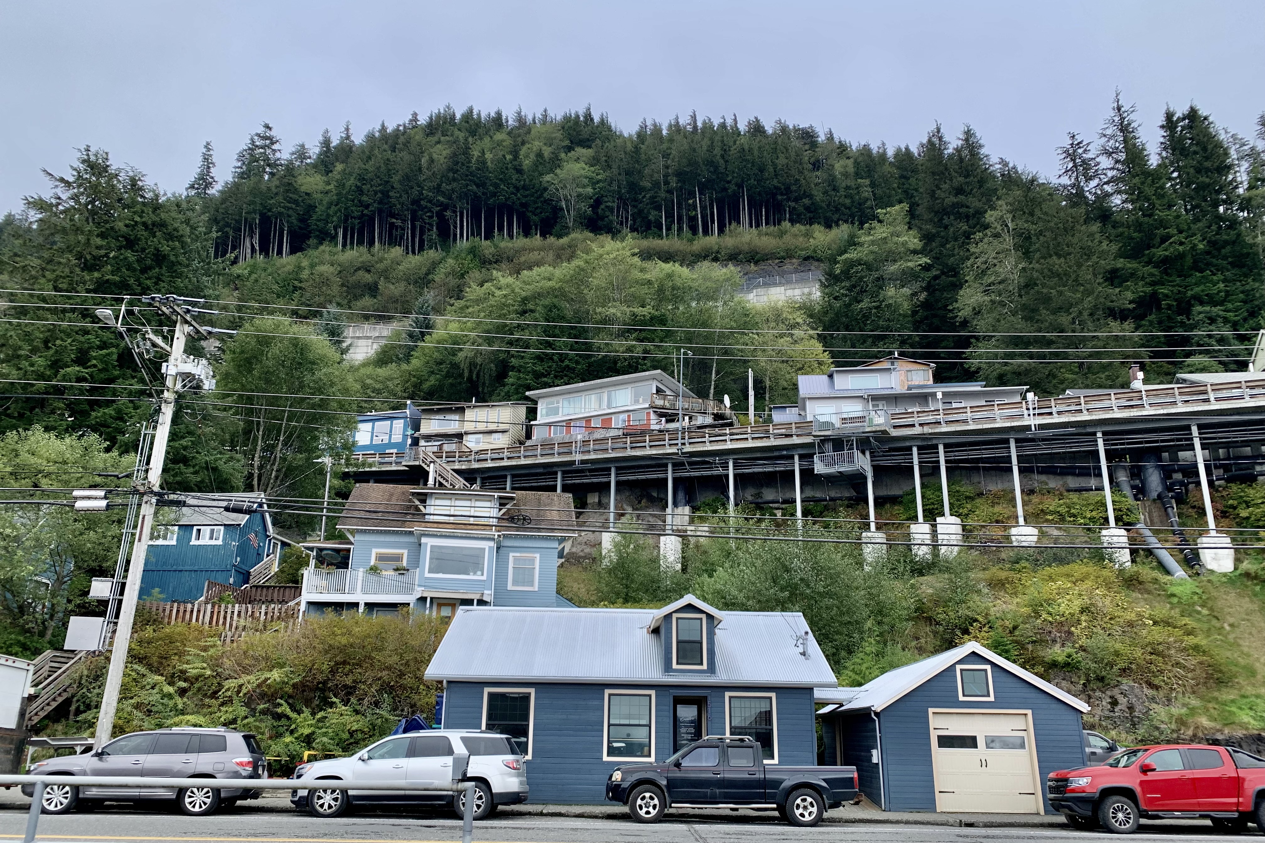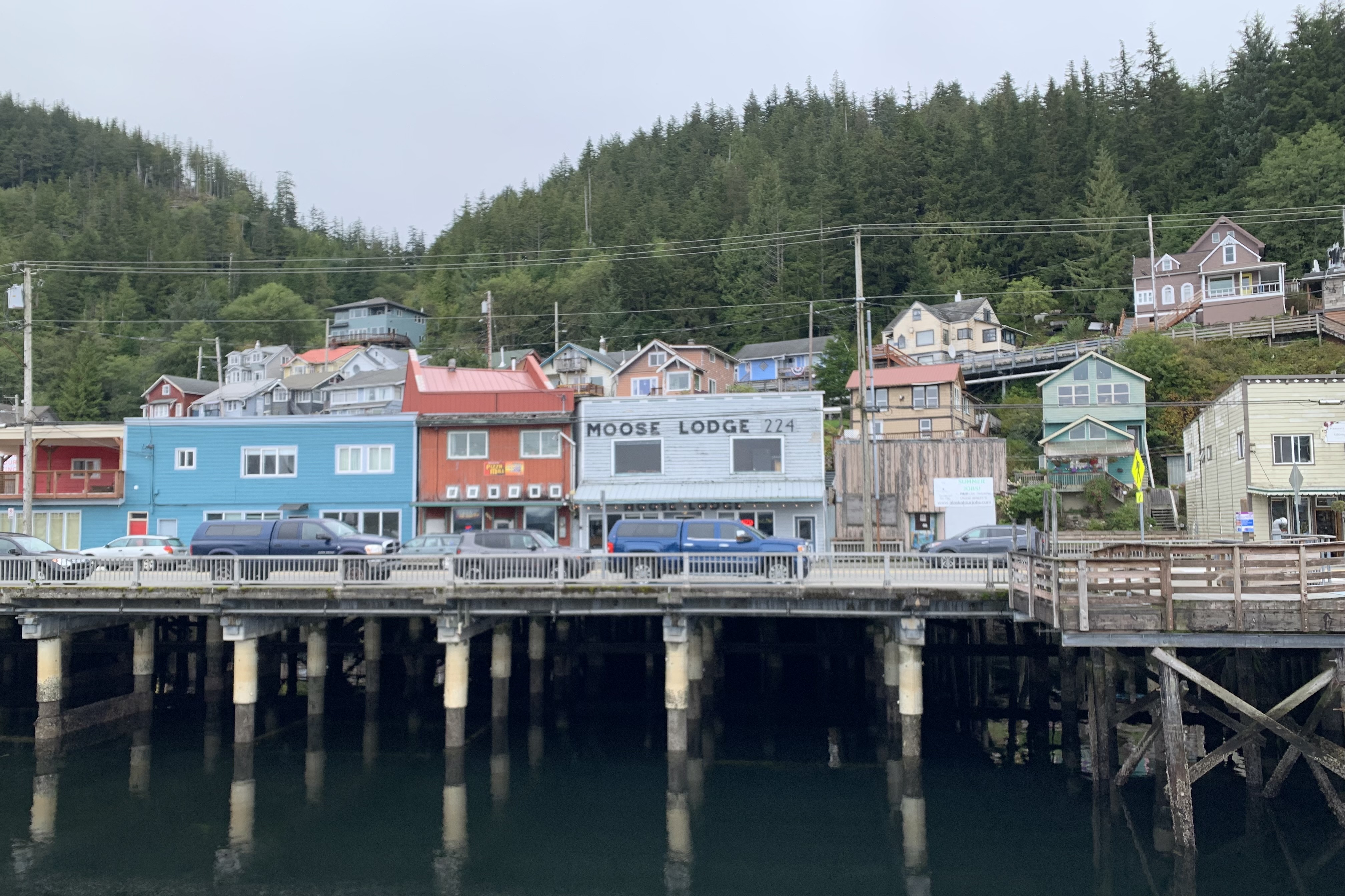 I sleeping soundly and never awakened to the rumbling sounds of the activity at the two nighttime ports-of-call : Petersburg and Wrangell. We were enveloped in a dense fog and I guess it had been too much to hope for to have more than 0ne sunny day. This was the only port, Ketchikan, that I was opting to visit other than Skagway where I boarded. I was enthused as I had visited this town about fifteen tears ago and found it charming. I hopped on a city bus to get downtown as it was about 3 miles from the ferry dock. I was glad for the circuitous route of the bus as it travelled through many part of the town.