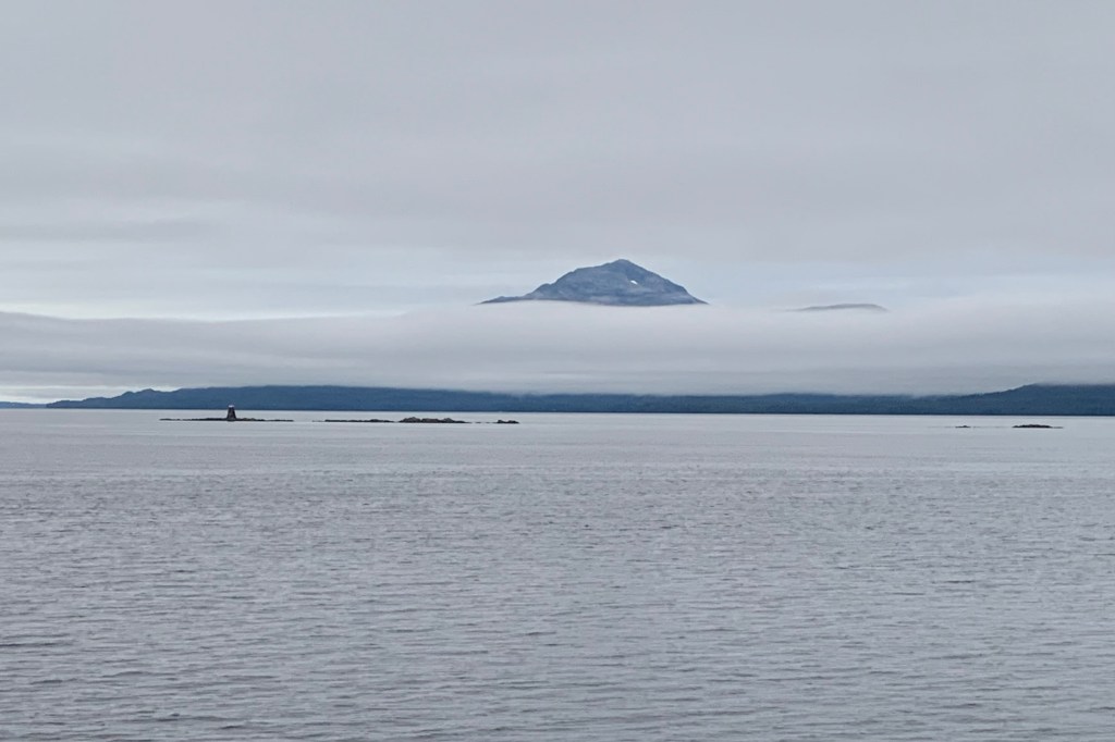 Departing Ketchikan around 5:00 pm, we would be “at sea” for the next 40hours as there were no additional docking until the final destination of Bellingham Washington. The scene out of Ketchikan was similar to the entry with the coastline shrouded in clouds and fog.
