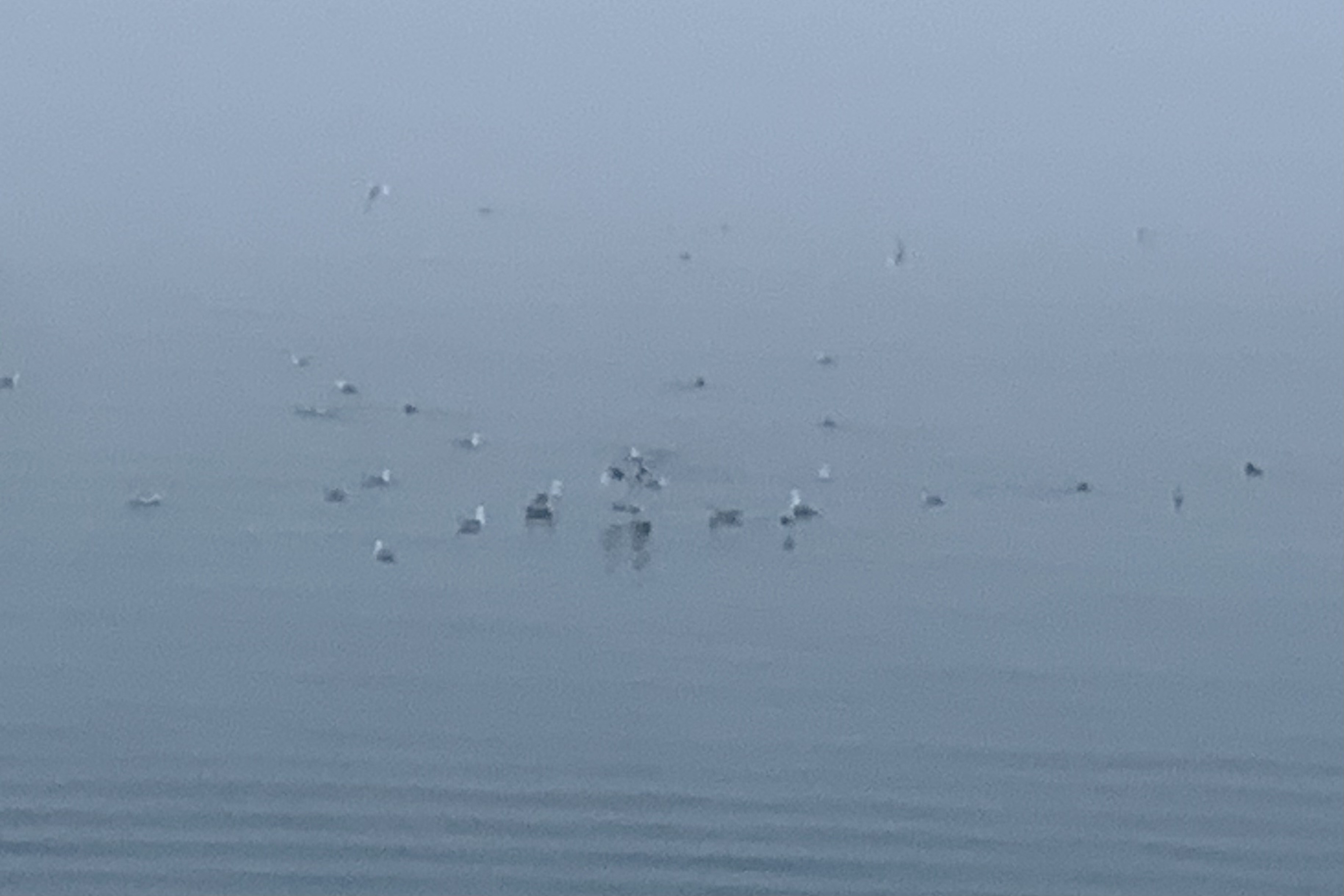 I had intended to return by the identified beach trail but realized that, though you could get views the water and the beach from it, it was NOT on the beach. So I blazed my own trail through the rocks, seaweed, shells, and sand with a very light mist adding a sparkle to a delightful morning… with temperatures around 60. Guess that thought about everything didn’t have to be high intensity and thus taking the easier road had already vanished. This is not a Florida Beach, Long Island or the Jersey Shore type of beach. There were areas of coarse sand but mostly a mixtures of pebbles, gravel, shells, larger rocks and an occasional boulder, a variety of smooth stones of various colors… a beautiful mosaic or countless textures, vibrant colors and a myriad of natures detritus. I love striding barefoot on a beach but had no urge to ditch my shoes and scurry barefoot here. The tide was low so here was a variety of sea weeds washed ashore, wet and glistening, tangled, ribbon-like and splayed out across the shells and rocks adding to the ambience of this coastal edge . I spotted shells included clams, mussels, barnacles, scallops but no conch as these tropical mollusks do not inhabit frigid waters. .