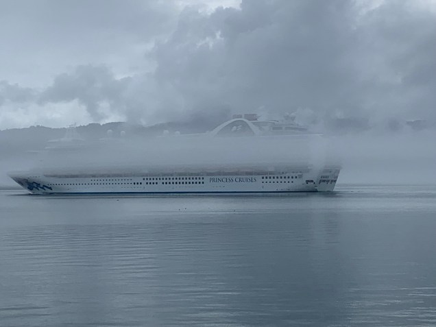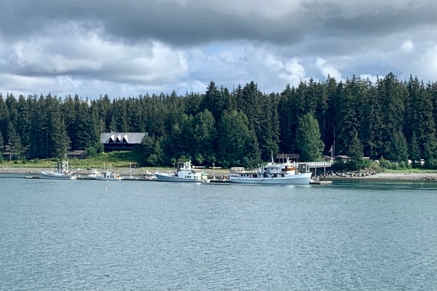 Since I had not had an opportunity to visit the Tribal house of the Huna (my priority usually is to beat up my body with physical endeavors), when a member of the Huna Clan, a subgroup of the Tlingit people, would be present to share their story, I headed there. I was mesmerized by the carved totems outside and the carved pillars on the interior. Owen, a craggy old gent, was the Huna representative and had been intricately involved in the carvings in this Ancestral House which opened in 2017. He took the time to share the story of each pillar. I regret that I can not remember accurately so much of the lore he described in the totems and walls of the of Tuna Shuka Hit, the Huna Ancestor’s House.