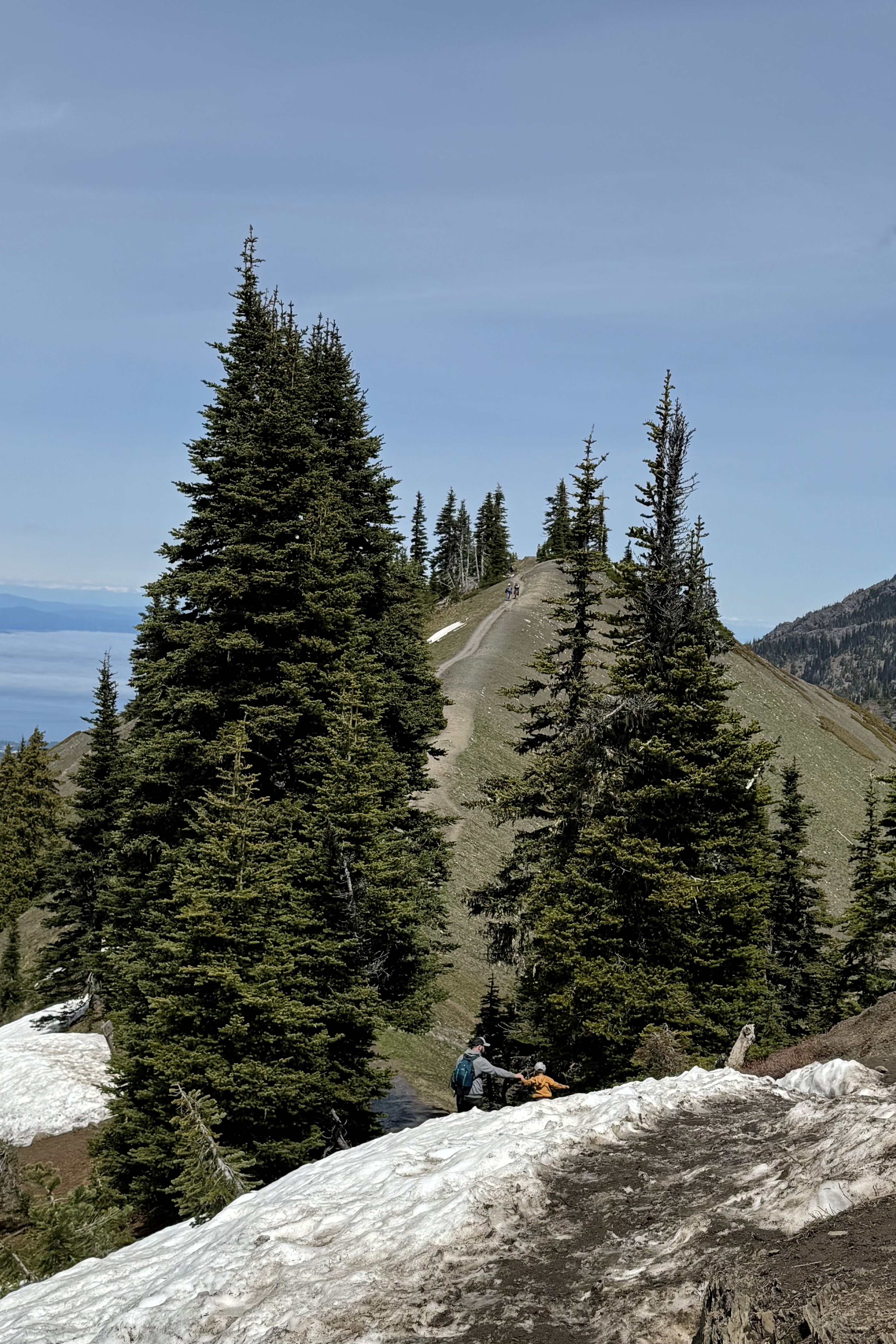 Being mid-summer and the week-end before July 4th, I think half the population of Oregon decided to visit this falls and many taking the hike to the top of the falls. A very diverse cadre of people were all vying for a spot on the railing for a perfect photo op. I would join the mob but I knew realistically it was impossible to get the full height of the falls in a photo so even though I asked an individual to take a photo of me, it was awful but decided it was not necessary to prove that I indeed had been there. There were hiking options and the hike up to the bridge was . 2 mile and then to the top 1 mile. I was game…not really anticipating that not only people but signs often lie ( a national pastime at this point in history) and my rational brain did not engage enough to consider that perhaps hiking to the top of the falls was not the sanest of plans.